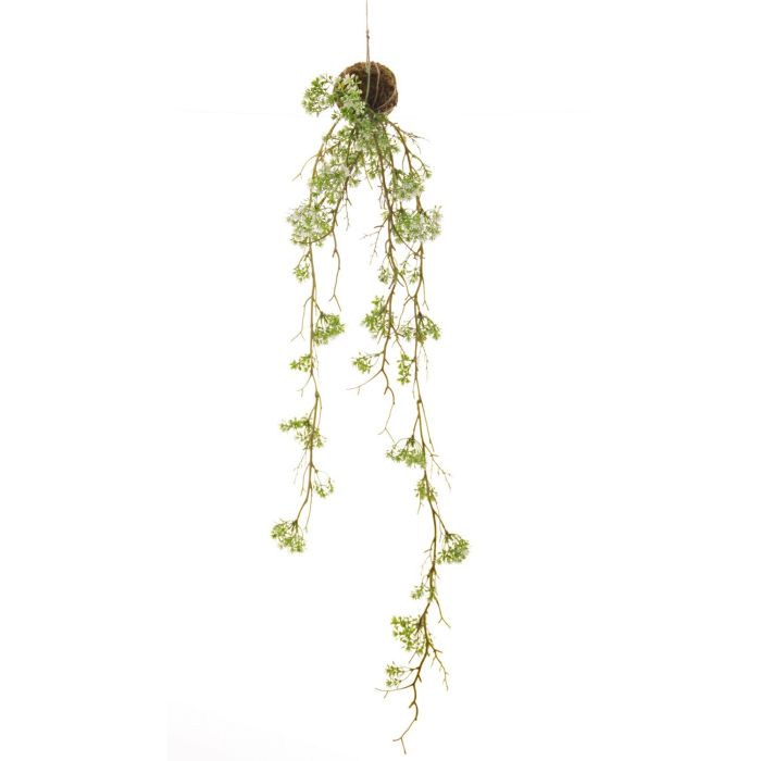 Die künstliche Ranke SIRIA in der Farbe weiß hat ein Gesamtmaß von ca. 90 cm und ist auf einem Moosball befestigt.