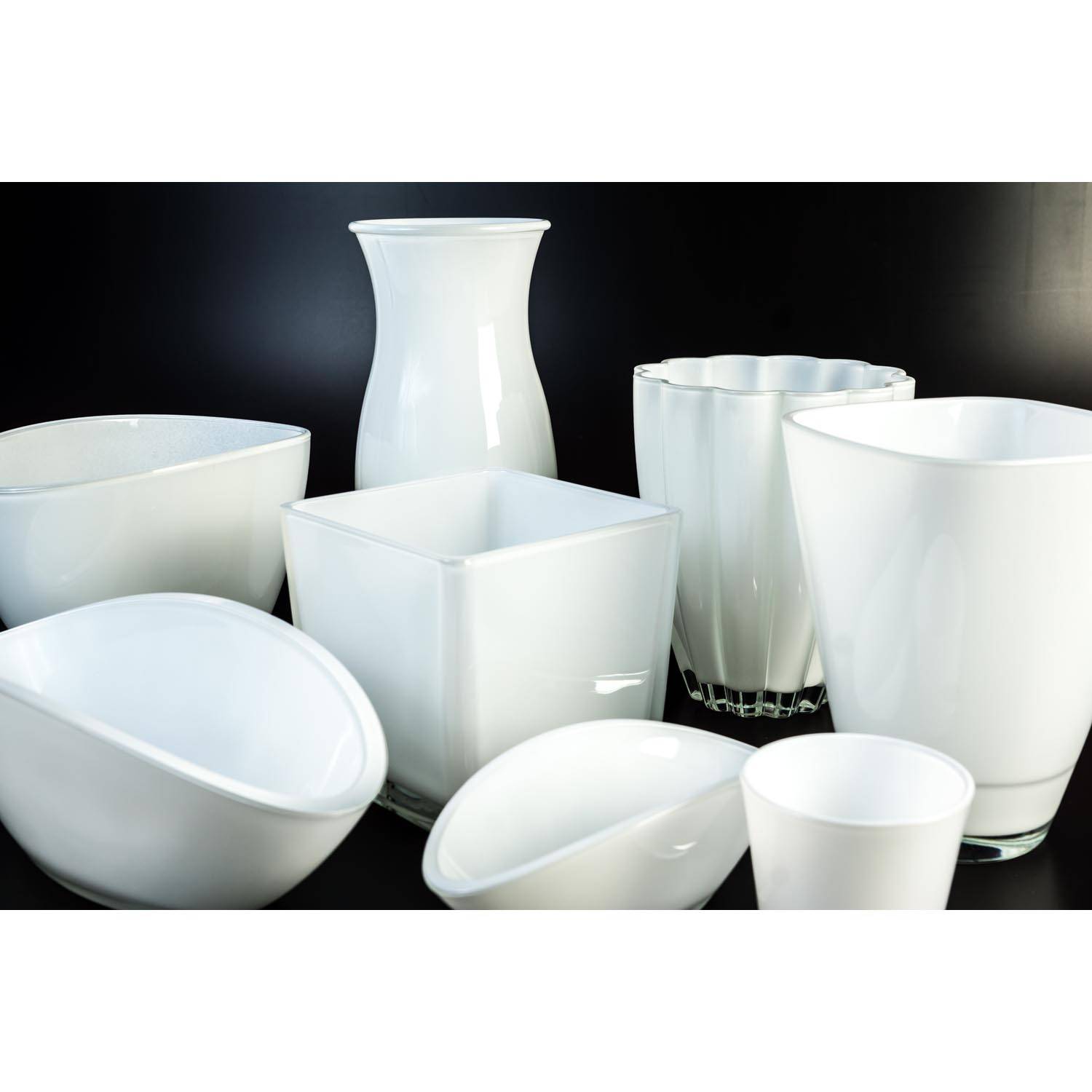 Glas Blumenvase BEA, weiß, 17cm, Ø14cm