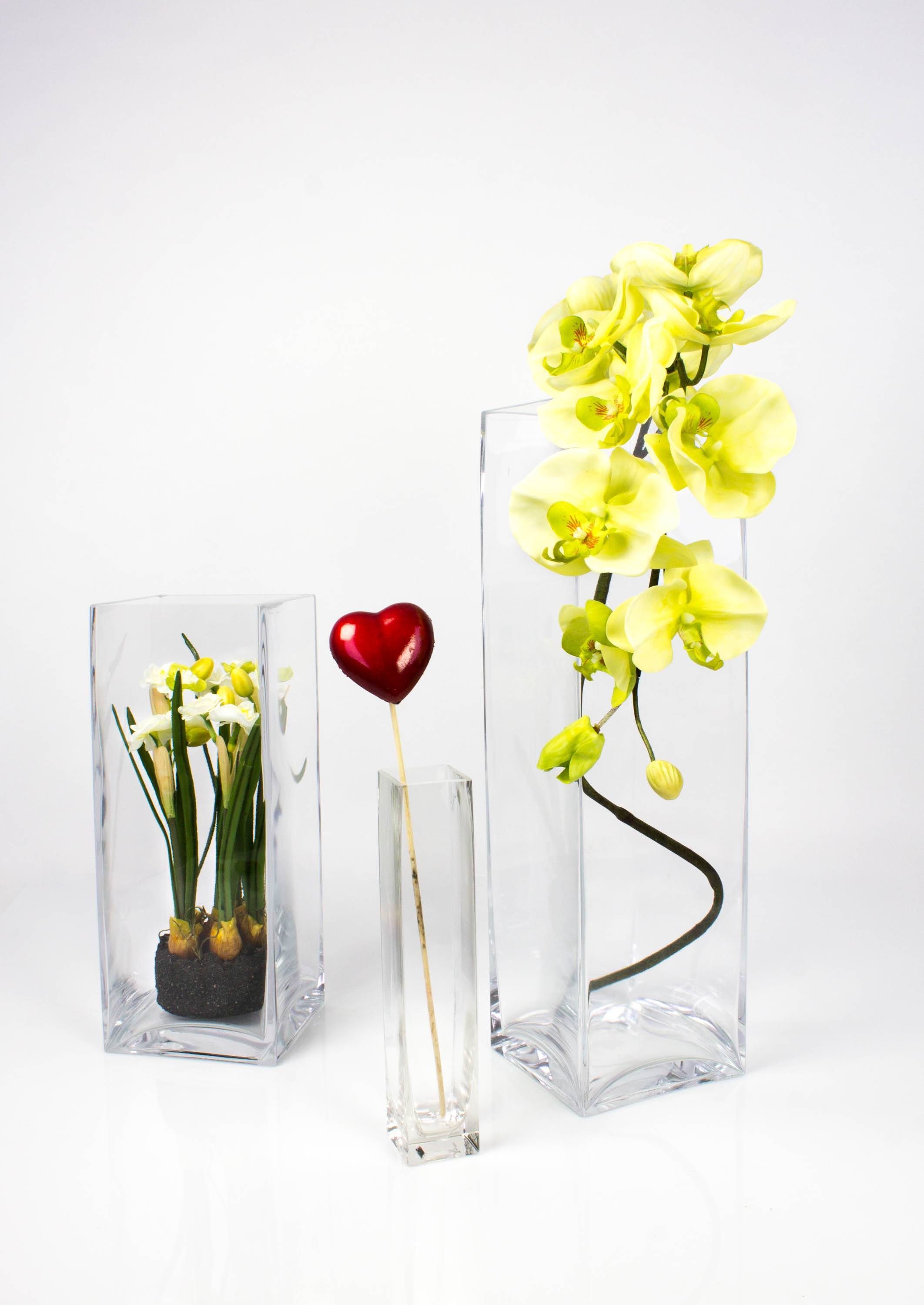 Glas Blumenvase eckig JACK EARTH, klar, 14x14x49cm