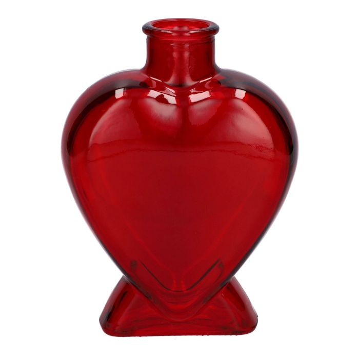 Glas Dekoflasche BELEZA in Herzform, mit Fuß, rot-transparent, 14x6,5x18,5cm
