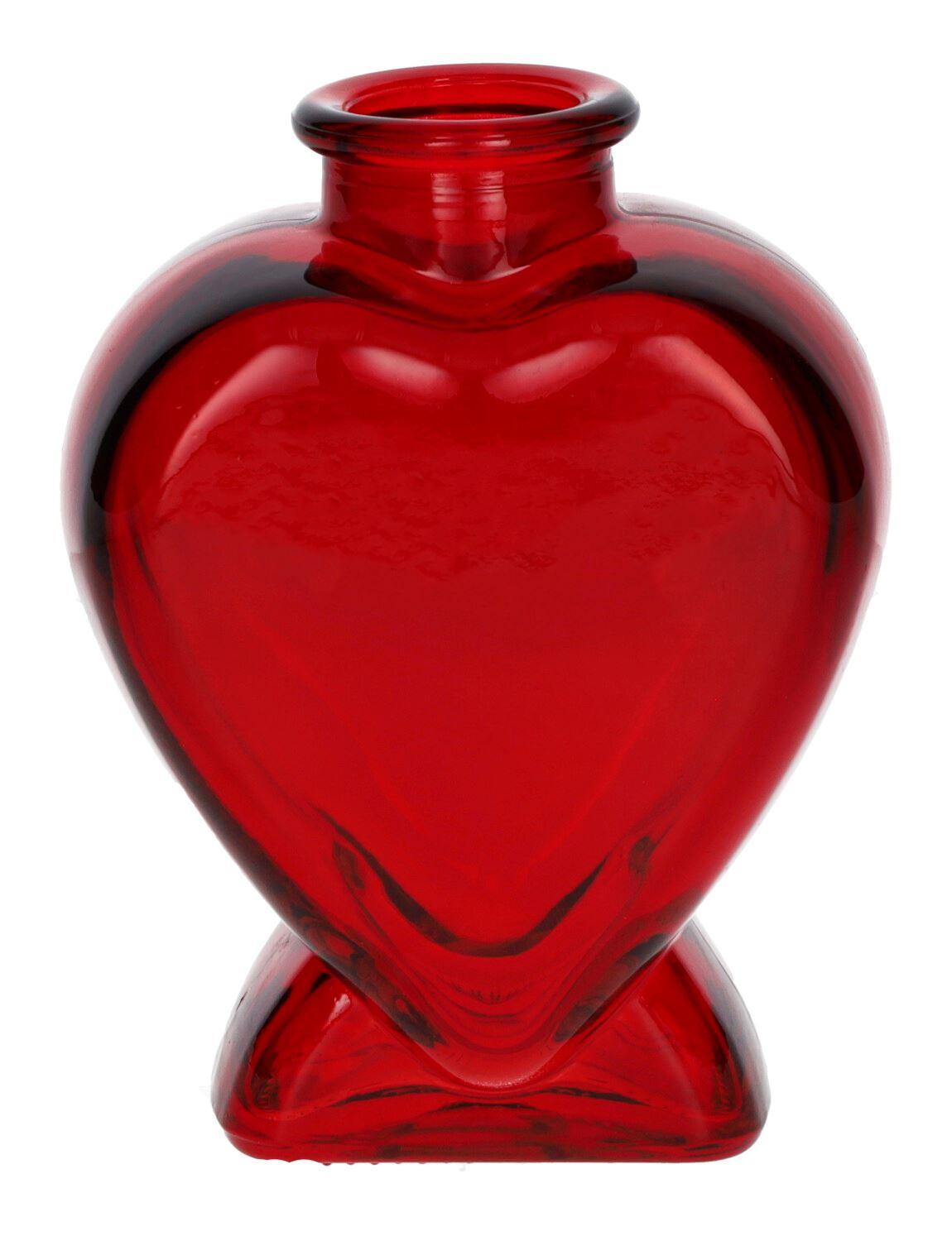 Glas Dekoflasche BELEZA in Herzform, mit Fuß, rot-transparent, 8,5x5,5x11,2cm