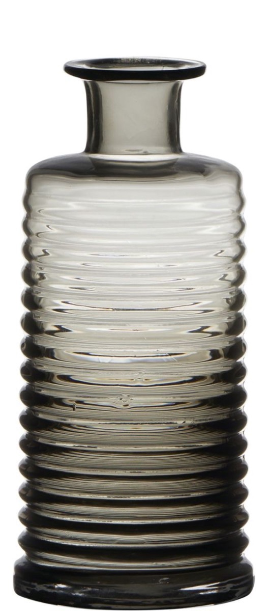 Glas Flasche STUART mit Rillen, grau-klar, 21,5cm, Ø9,5cm