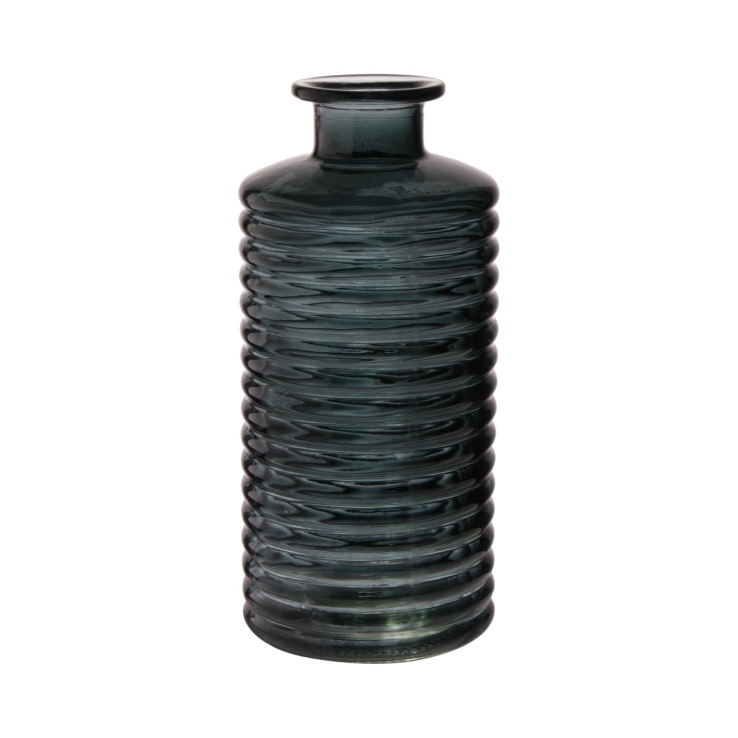 Glas Flasche STUART mit Rillen, waldgrün-klar, 31cm, Ø14,5cm