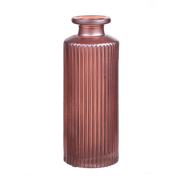 Glas Flasche Vase EMANUELA, Rillenmuster, rosa-metallic, 13,2cm, Ø5,2cm