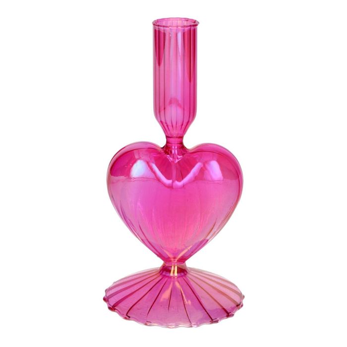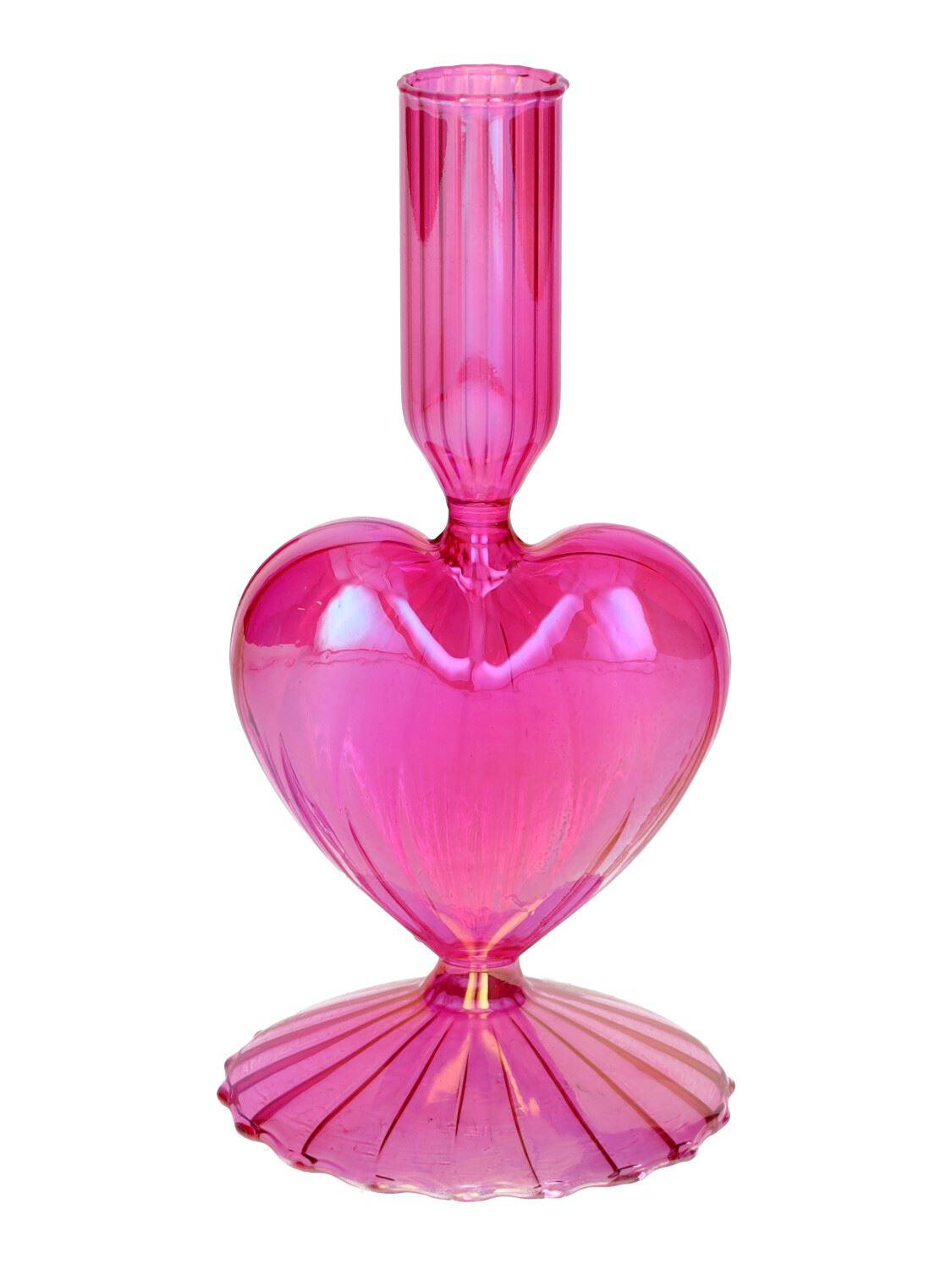 Glas Kerzenhalter ELIZZA in Herzform, mit Fuß, irisierend-fuchsia, 8,5x8,5x16,5cm