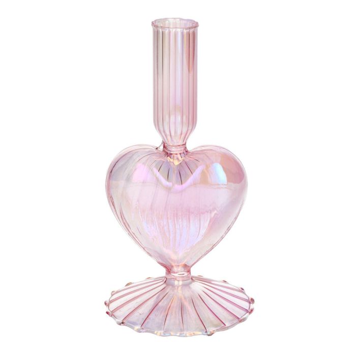 Glas Kerzenhalter ELIZZA in Herzform, mit Fuß, irisierend-hellrosa, 8,5x8,5x16,5cm