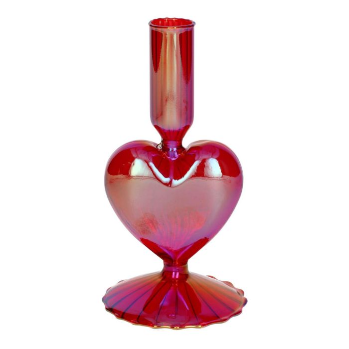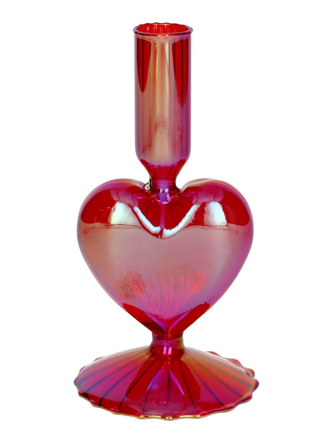 Glas Kerzenhalter ELIZZA in Herzform, mit Fuß, irisierend-rot, 8,5x8,5x16,5cm
