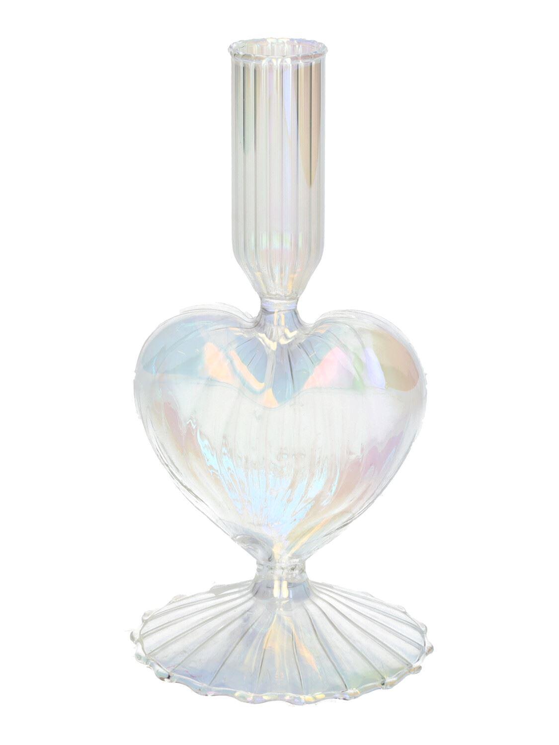 Glas Kerzenhalter ELIZZA in Herzform, mit Fuß, irisierend-transparent, 8,5x8,5x16,5cm