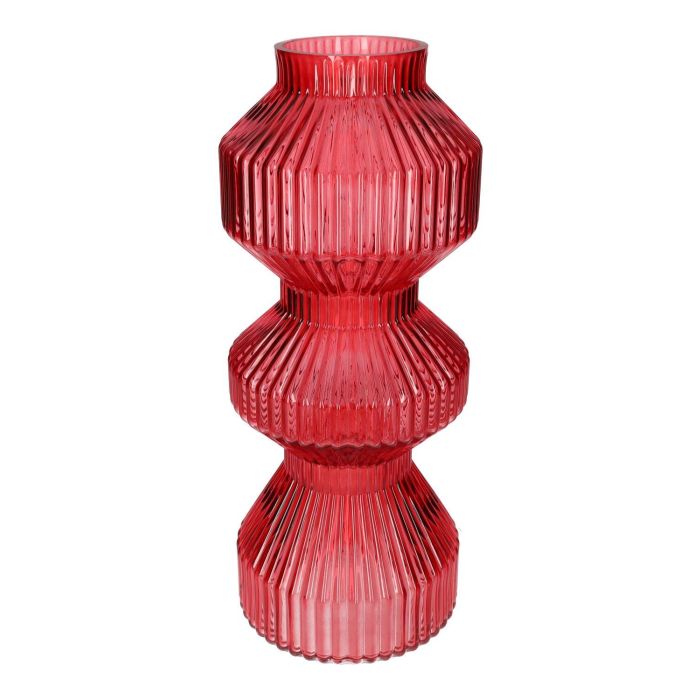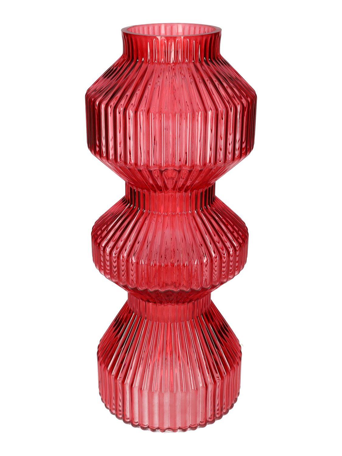 Glas Tischvase LUCELLE mit Rillen, kirschrot, 40cm, Ø16cm