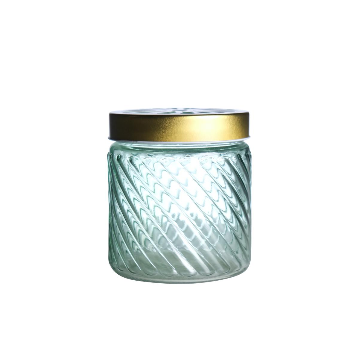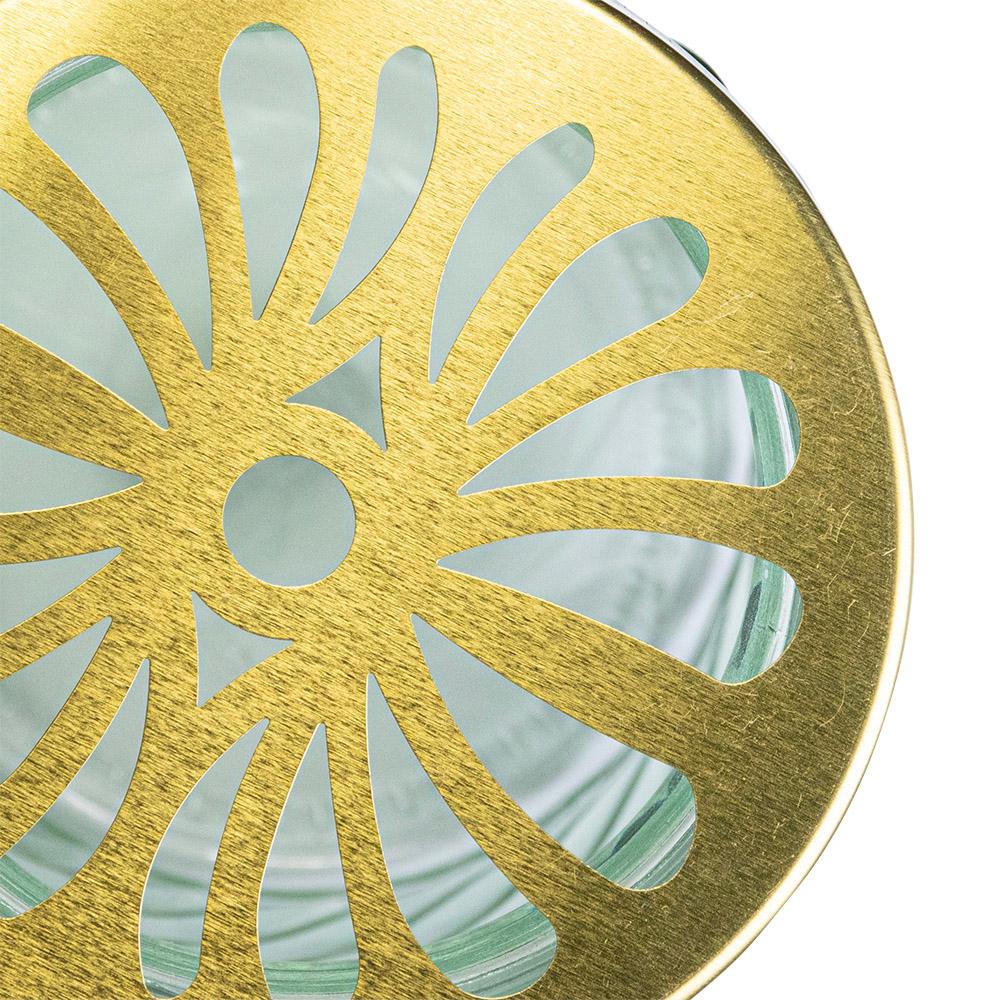 Glas Vase CALLYPSO, Deckel mit Löcher, grün-gold, 12cm, Ø11cm