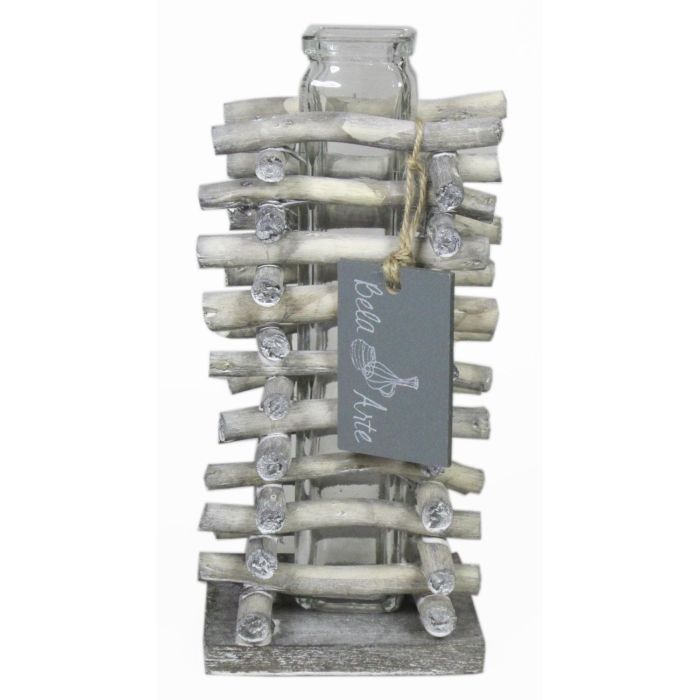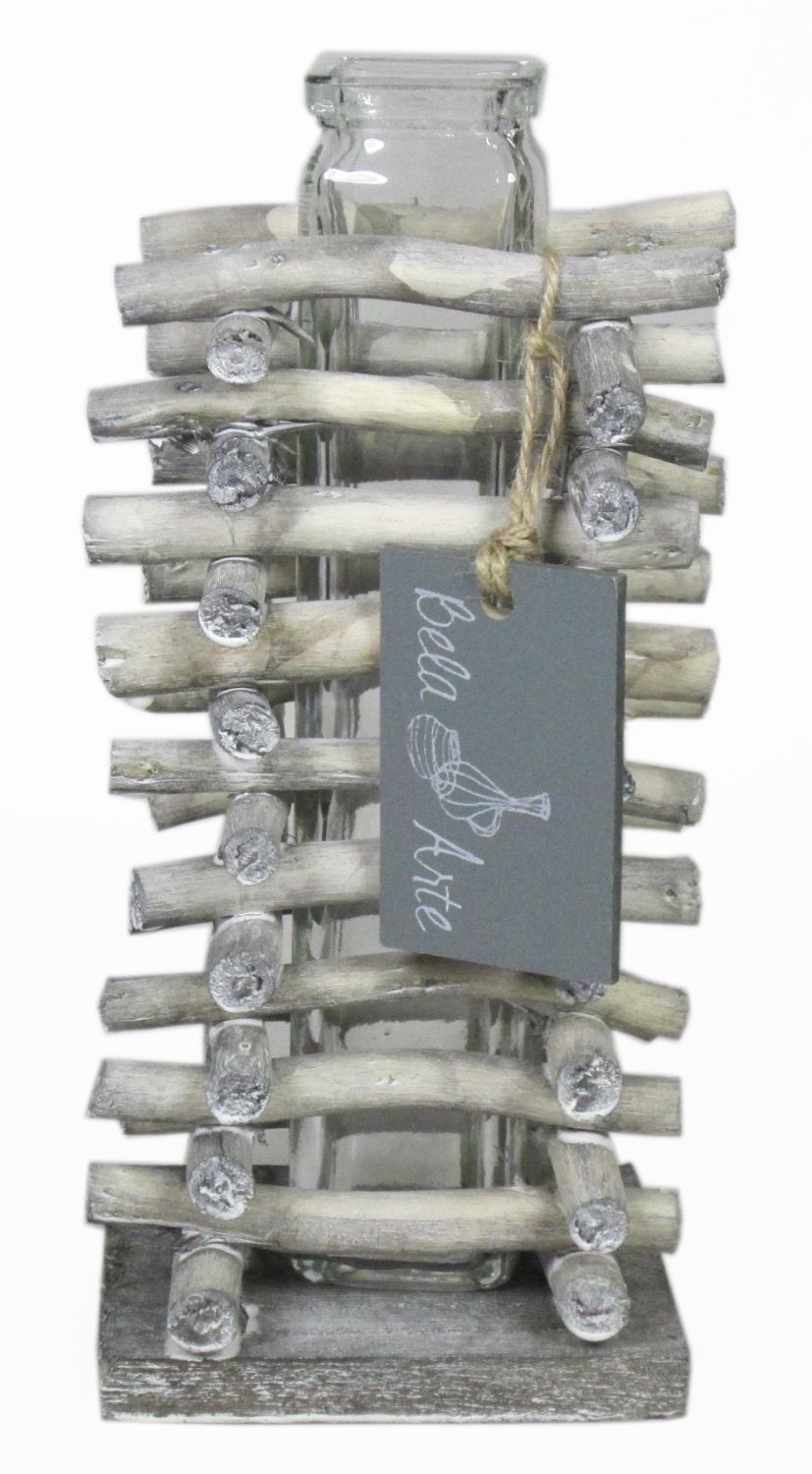 Glas Vase für Stielblumen SIHAM, Holzständer, klar, 8,5x8,5x17cm