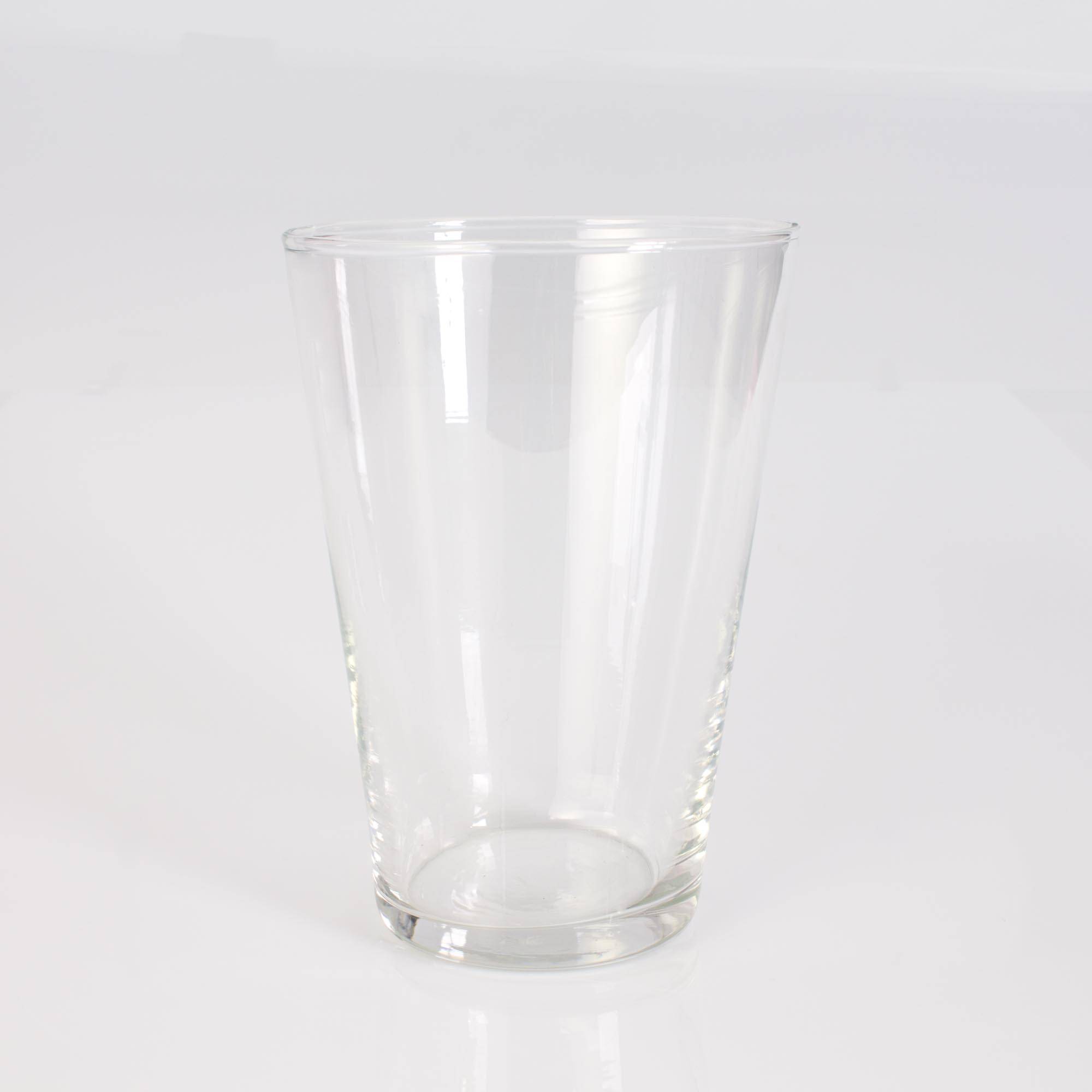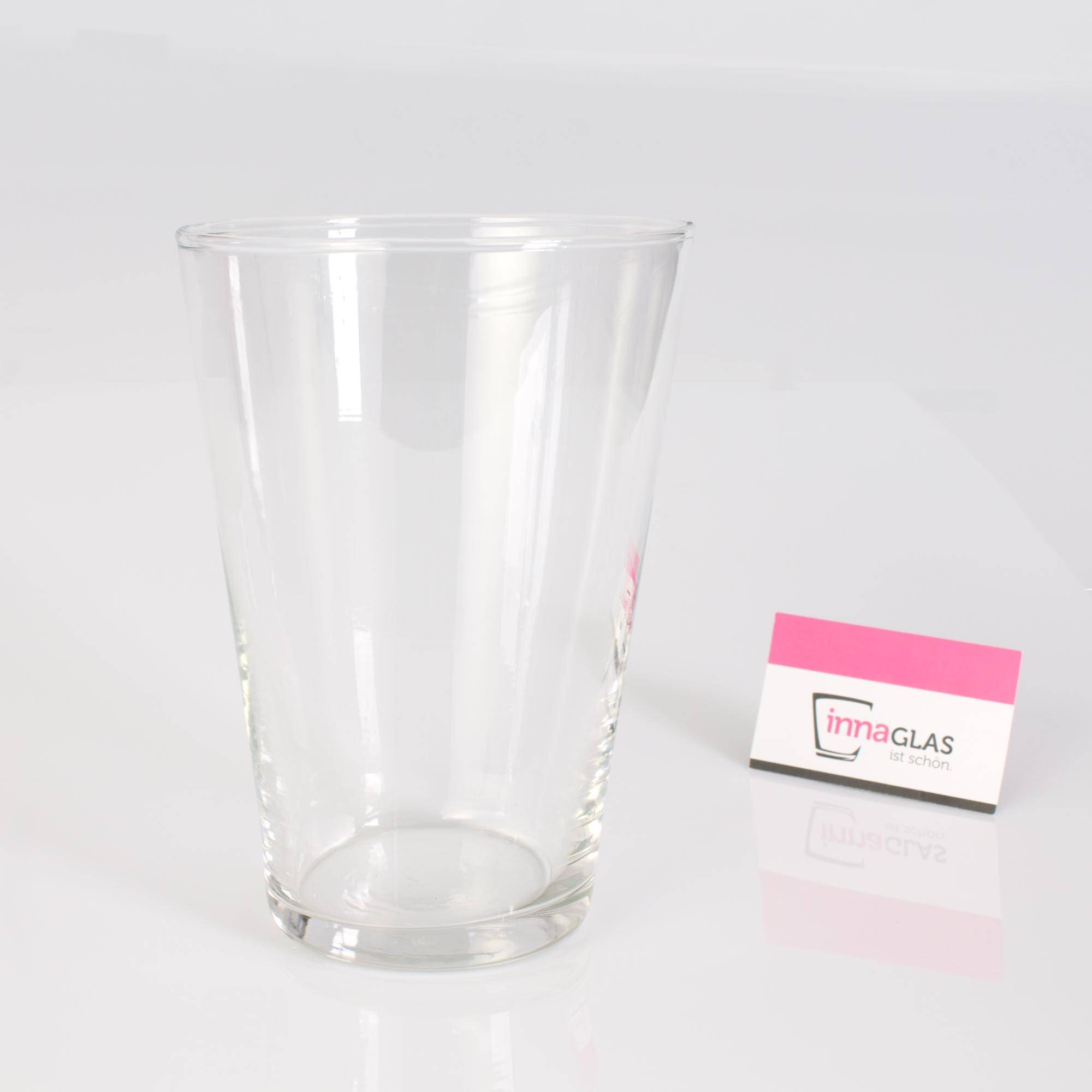 Konische Vase JENNYmit 3 mm Glasstärke in Farbe klar von INNA Glas. Die schöne Blumenvase ist 19,5 cm hoch und hat oben einen Außendurchmesser von 14 cm.