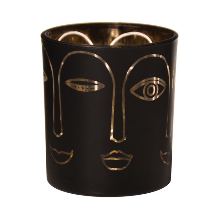 Glashalter für Teelicht LEOLINE mit Gesichtern, schwarz-gold, 8cm, Ø7cm