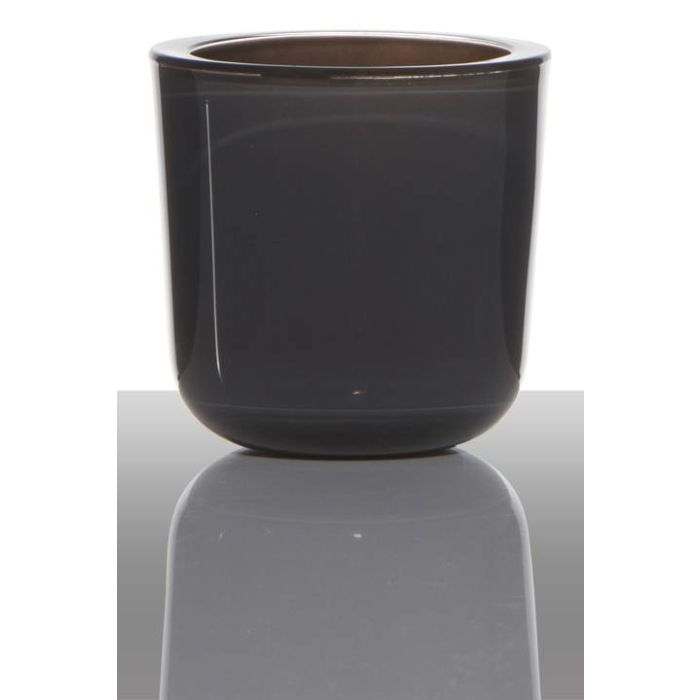 Glashalter für Teelicht NICK, dunkelgrau-transparent, 7,5cm, Ø7,5cm