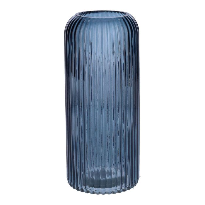 Glasvase ALBURGIS mit Rillen, blau-klar, 20cm, Ø8,7cm