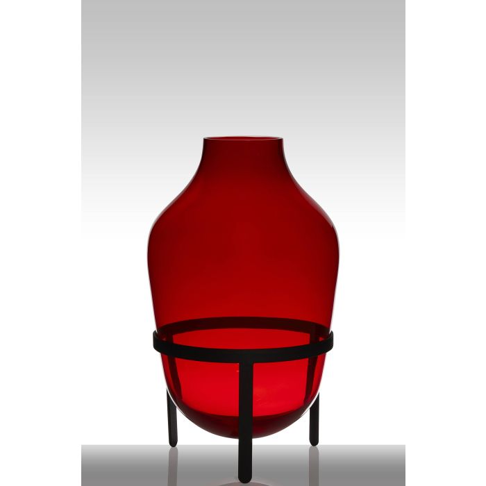 Glasvase für Blumen auf Ständer CAMILO, rot, 50cm, Ø29cm