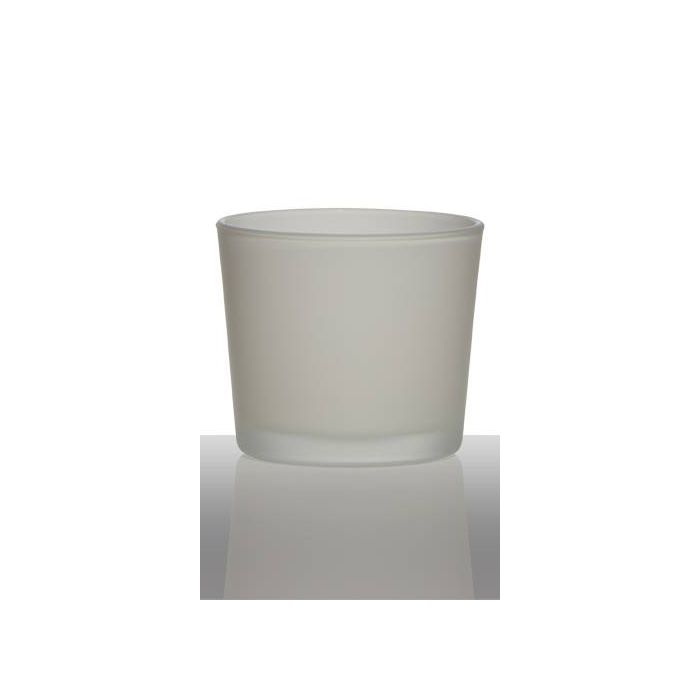 Windlichthalter ALENA FROST in Farbe weiß matt mit den Maßen 9 cm; Ø 10 cm von INNA Glas. Mit seinem klassischen schlichten Design eignet sich der kleine Übertopf für Pflanzen, aber auch zur Aufbewahrung von verschiedenen Kleinigkeiten.