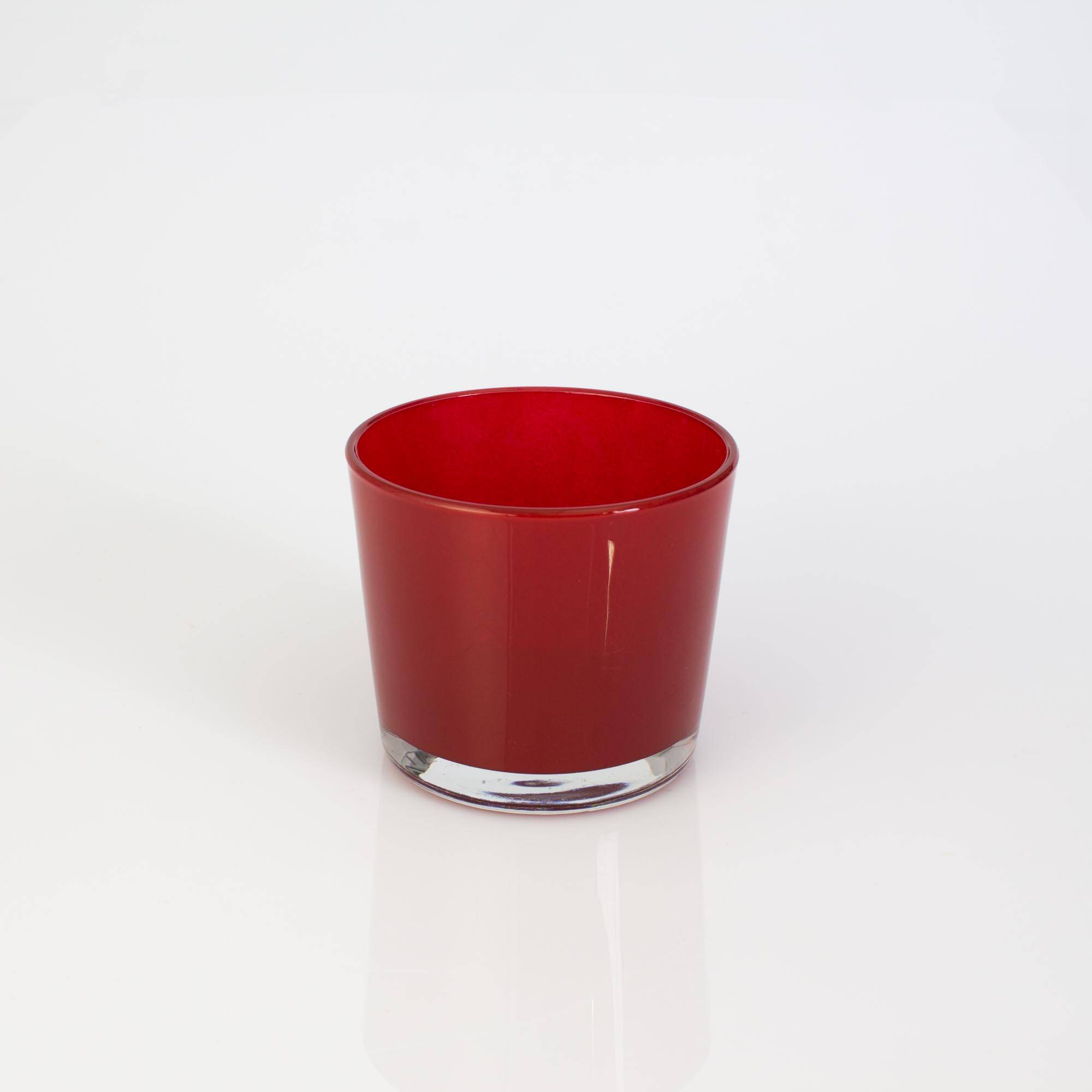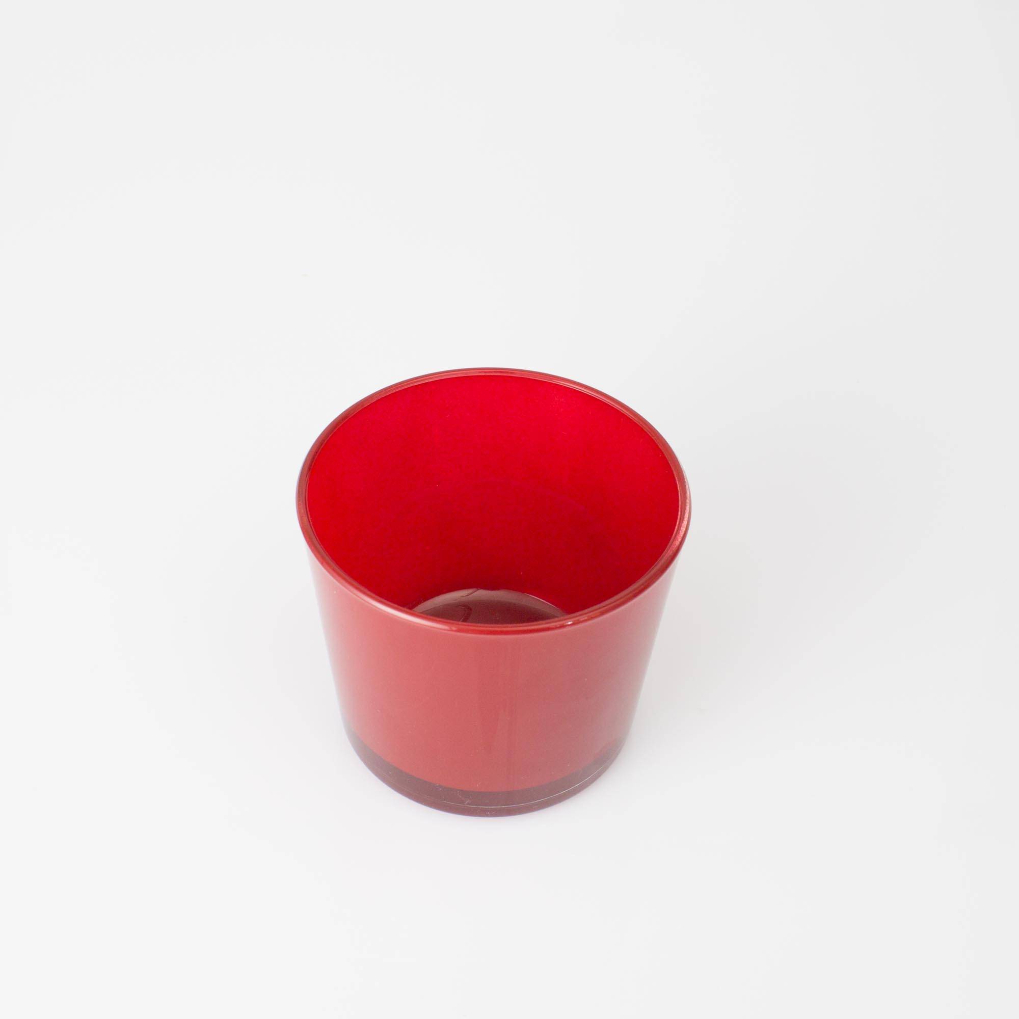 Glas für große Teelichter ALENA von INNA Glas in Farbe rot. Das Deko Glas mit der Höhe von ca. 8,5 cm und einem Durchmesser von ca. 10 cm kann auch als Übertopf für kleine Pflanzen eingesetzt werden.