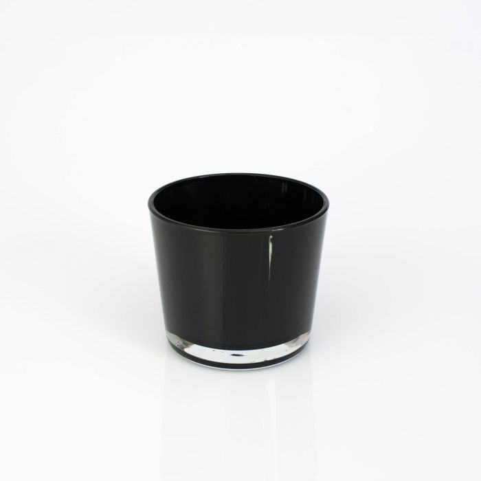 Glas für große Teelichter ALENA von INNA Glas in Farbe schwarz. Das Deko Glas mit der Höhe von ca. 8,5 cm und einem Durchmesser von ca. 10 cm kann auch als Übertopf für kleine Pflanzen eingesetzt werden.