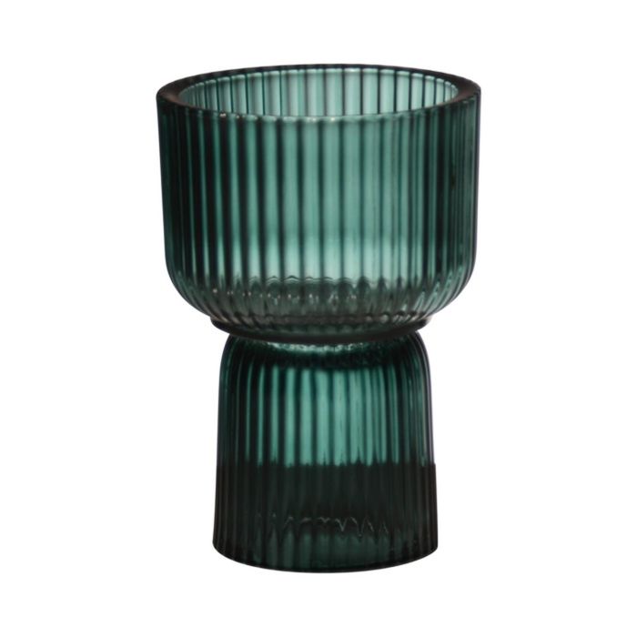 Großer Teelichthalter KENSIE, Glas, Rillen, grün-klar, 15,5cm, Ø10,5cm