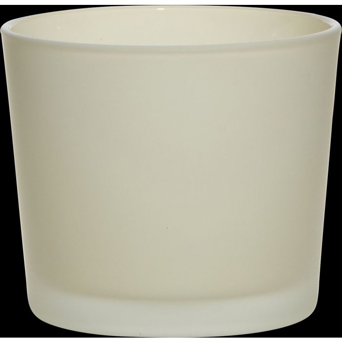 Glas für große Teelichter ALENA FROST von INNA Glas in Farbe beige matt. Das Deko Glas mit der Höhe von ca. 9 cm und einem Durchmesser von ca. 10 cm kann z.B. auch als Übertopf für kleine Pflanzen eingesetzt werden.