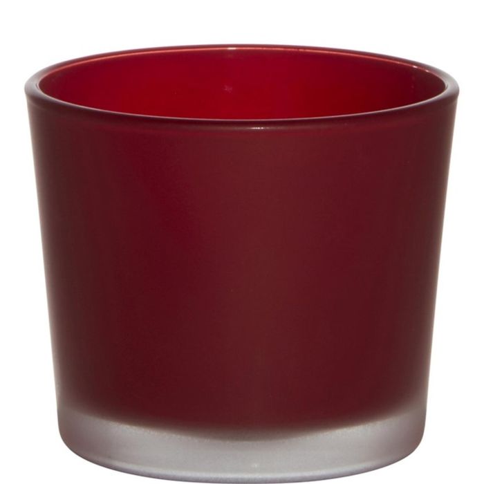 Glas für große Teelichter ALENA FROST von INNA Glas in Farbe rot matt. Das Deko Glas mit der Höhe von ca. 9 cm und einem Durchmesser von ca. 10 cm kann z.B. auch als Übertopf für kleine Pflanzen eingesetzt werden.