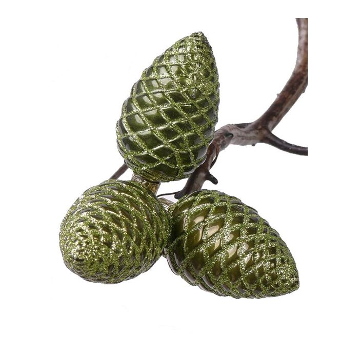 Grüne Tannenzapfen ZENTA, Christbaumschmuck, 3 Stück, 11cm