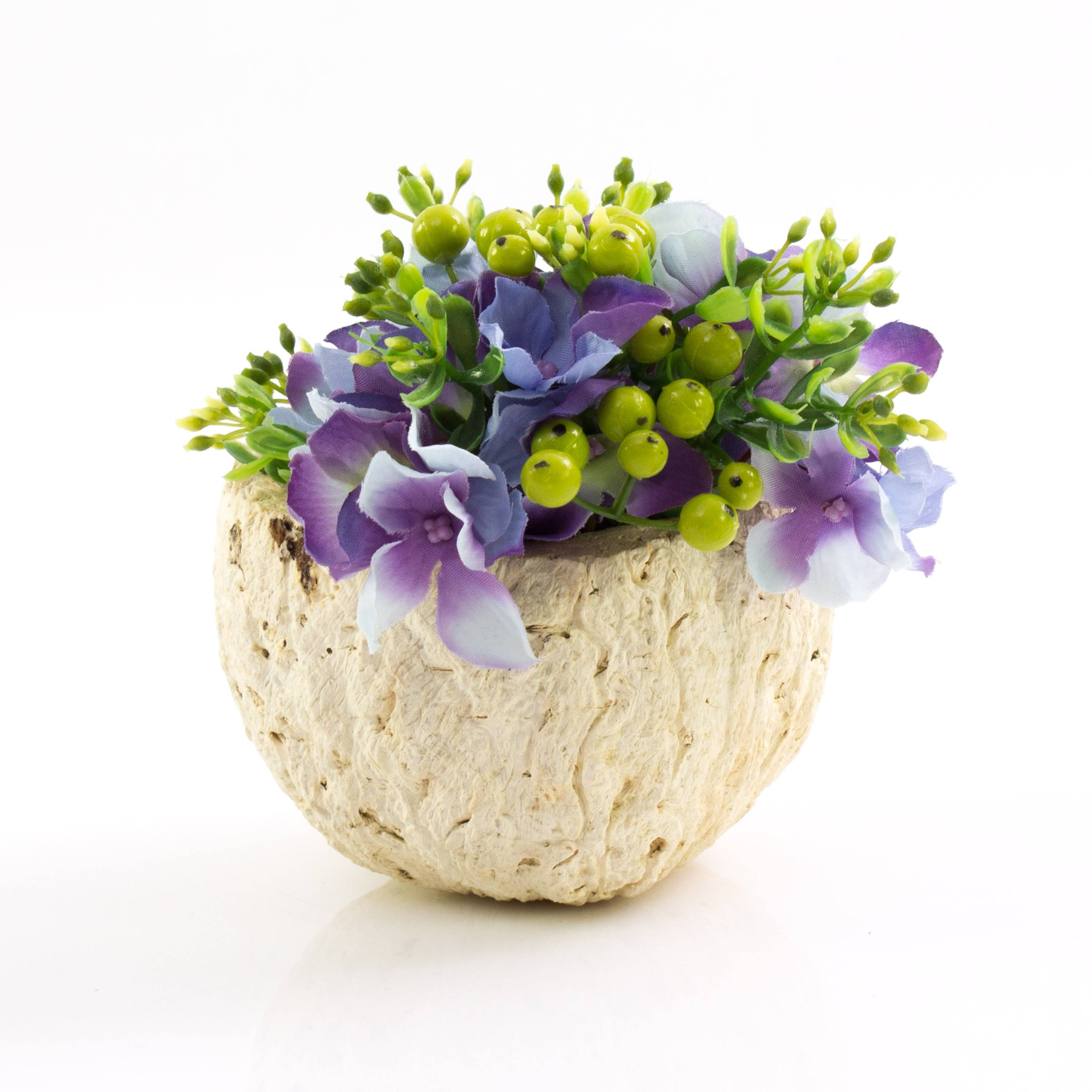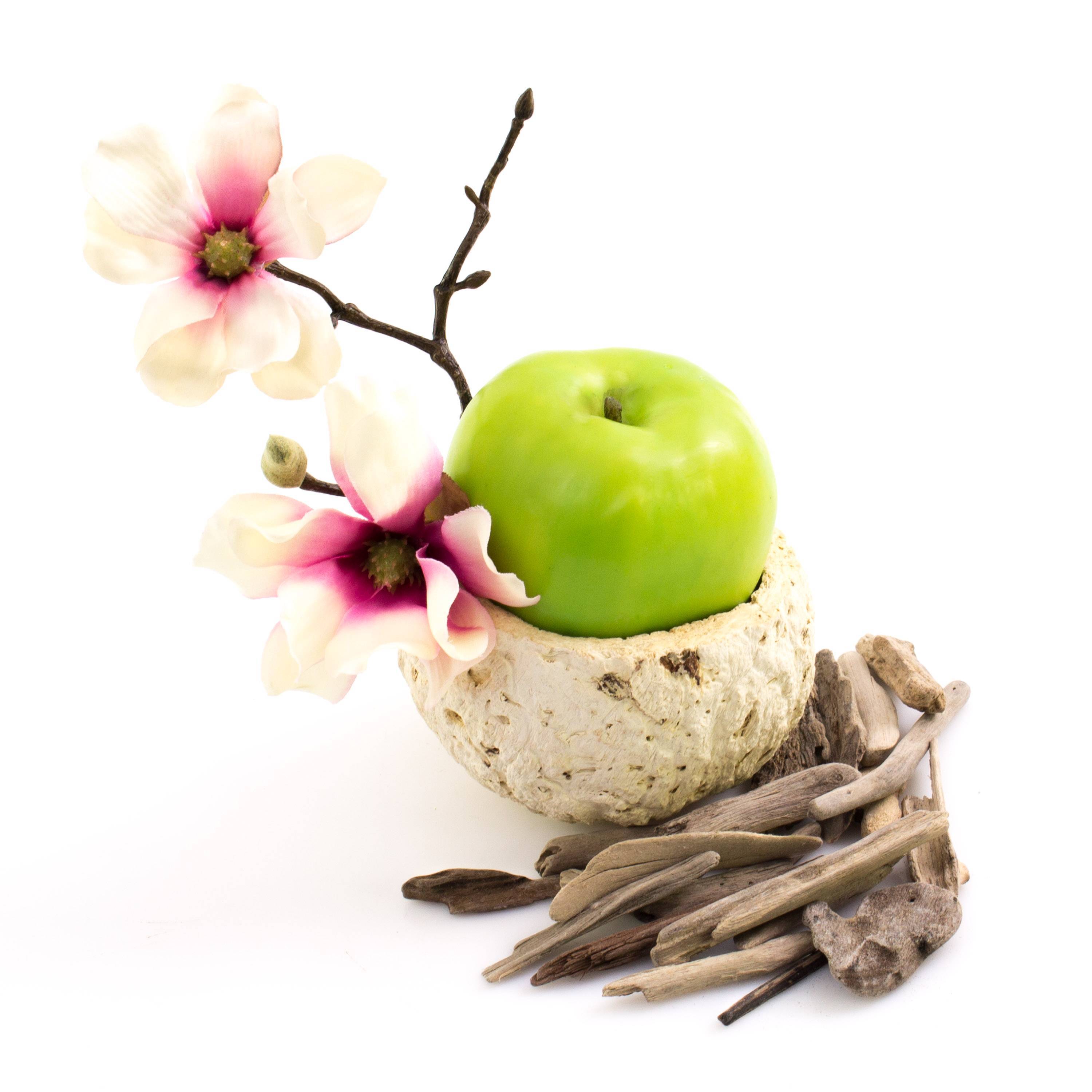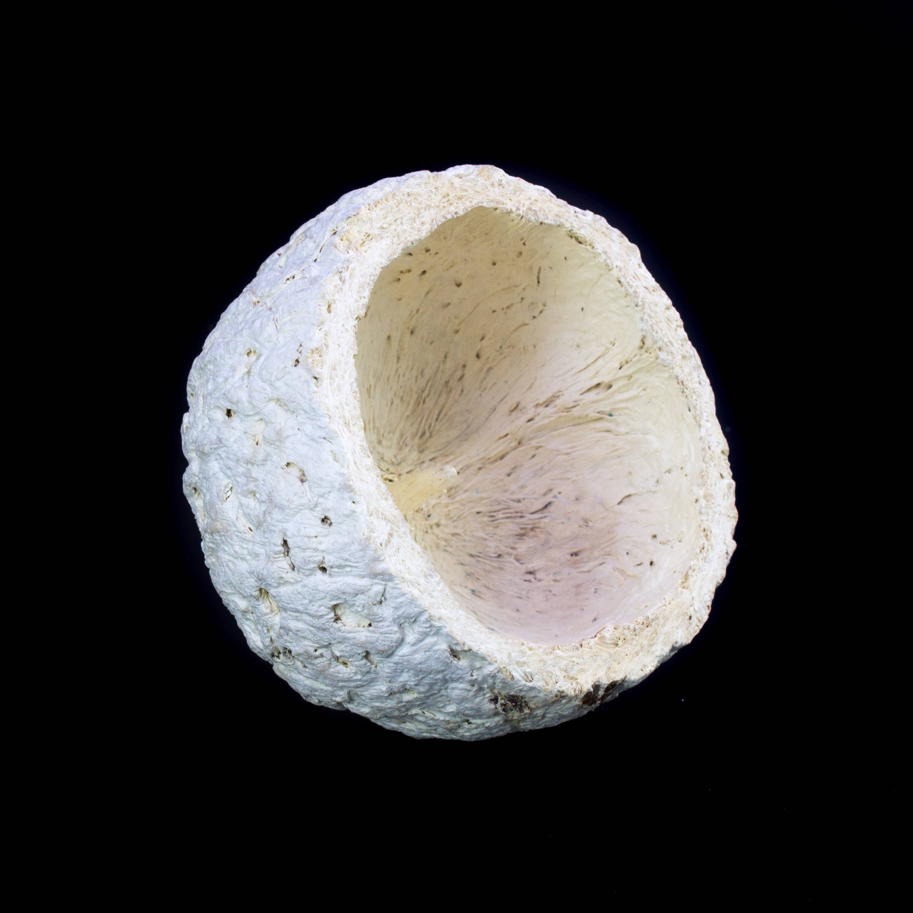 - Die Nußschalenhälfte hat selbststehend eine Höhe von ca. 7 cm und einen Außendurchmesser von ca. 10 cm