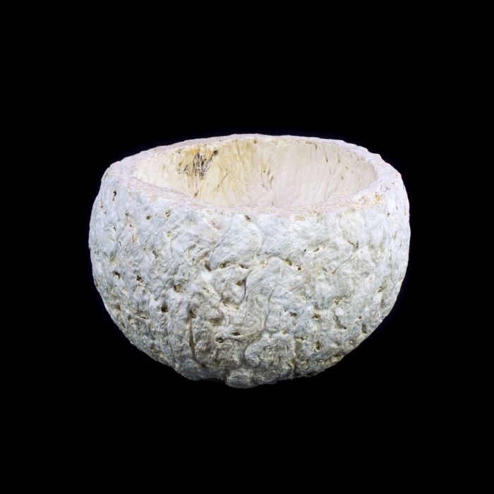 - die Oberfläche wurde creme-farbig gekalkt, optisch ist die natürliche faserige Struktur der Nuss noch erkennbar