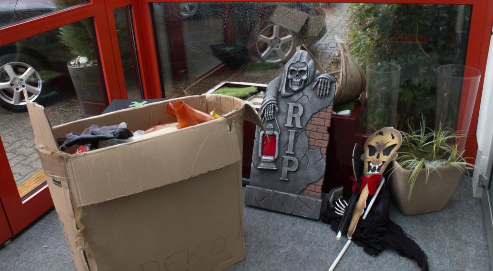 Wir versuchen unseren kleinen Vorraum immer entsprechend zur Jahreszeit zu dekorieren. Mit dem herbstlichen Wetter und Halloween um die Ecke musste unsere Sommerdeko weichen. Ersteinmal musste alles rausgeräumt werden und wir mussten uns einen Überblick über unsere Halloween- und Herbstdeko machen.