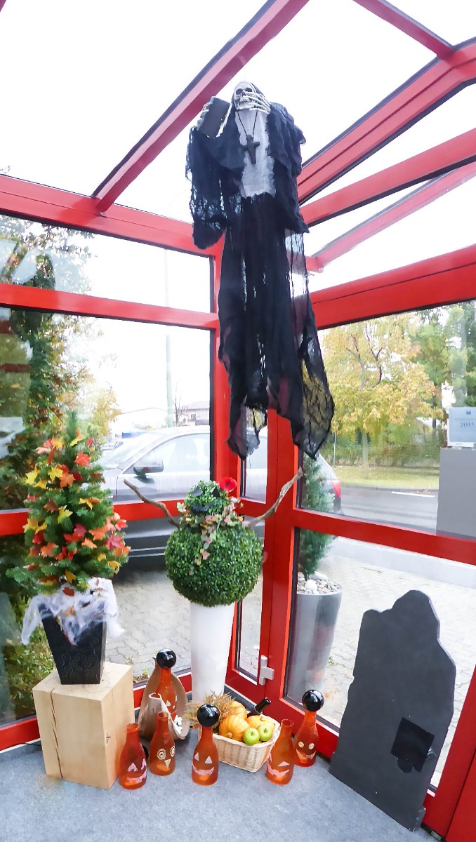 Mit ein paar unserer Halloweenfiguren haben wir das ganze noch ein bisschen gruseliger gestaltet. Wie findet ihr es?