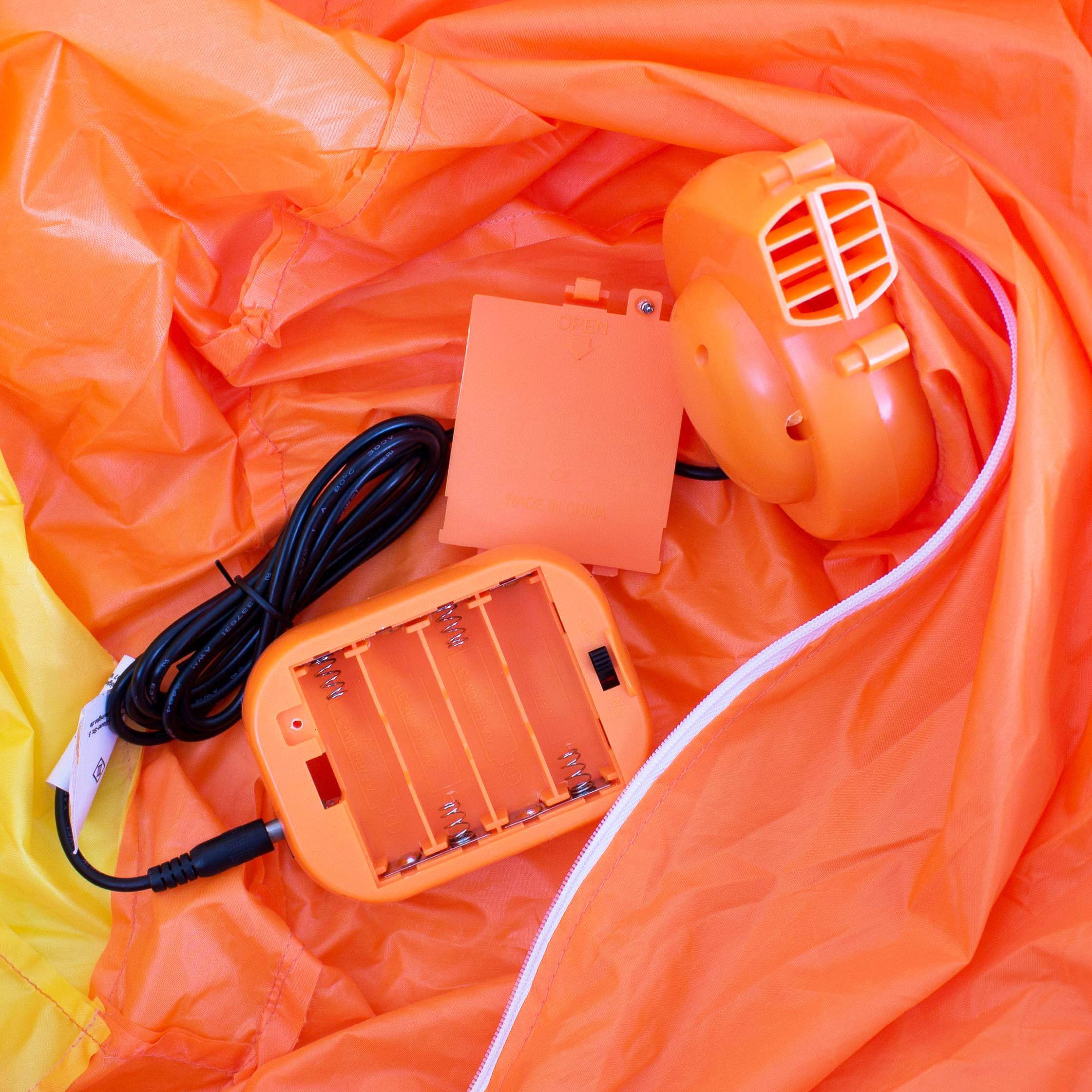 - Kostüm ist selbstaufblasend durch integriertes Gebläse, Betrieb über Netzteil