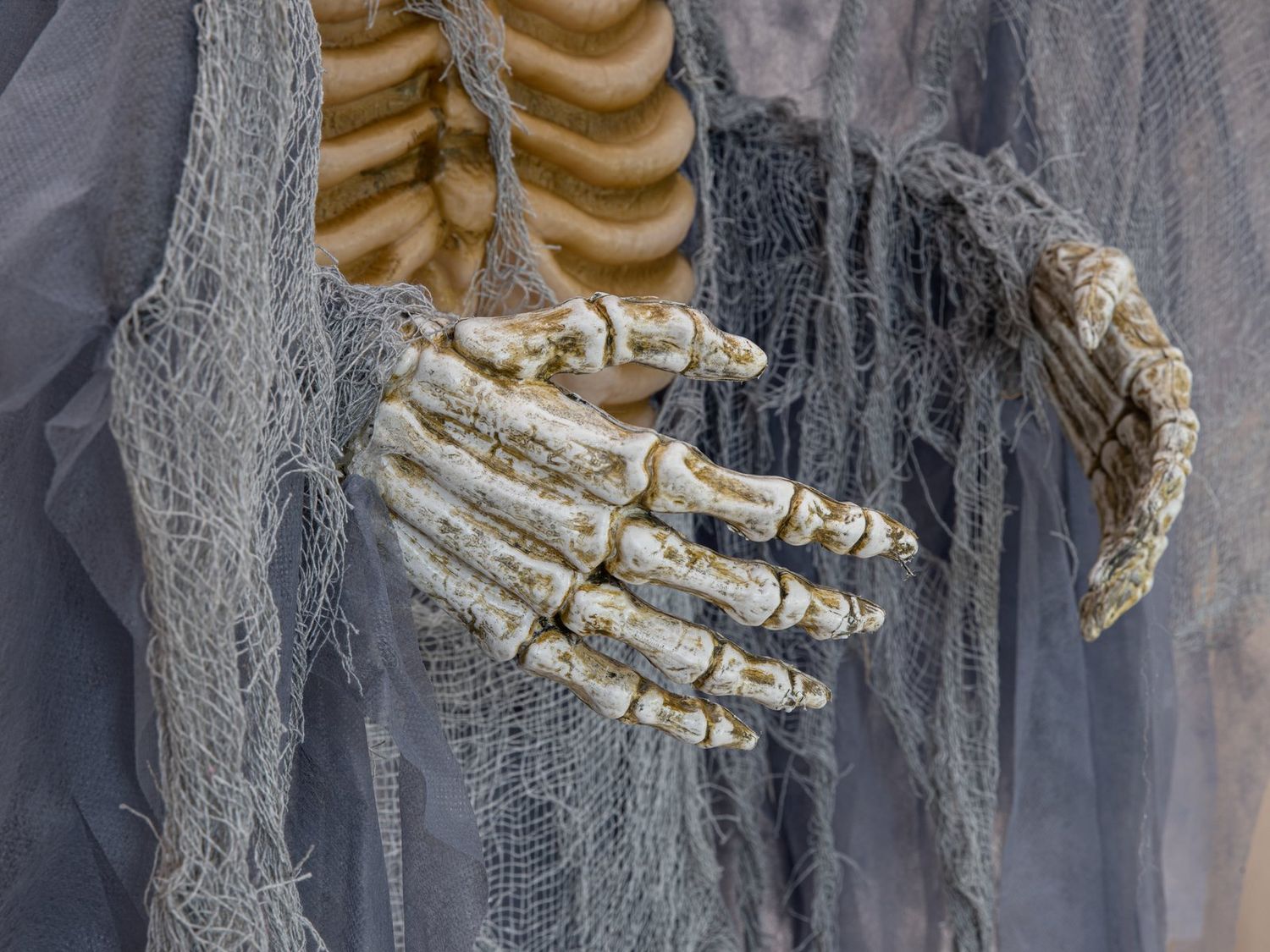 Halloween Dekoration Todesengel Skelett HALDOR mit Flügeln, Bewegungs- Soundfunktion, LEDs, grau, 100x60x175cm