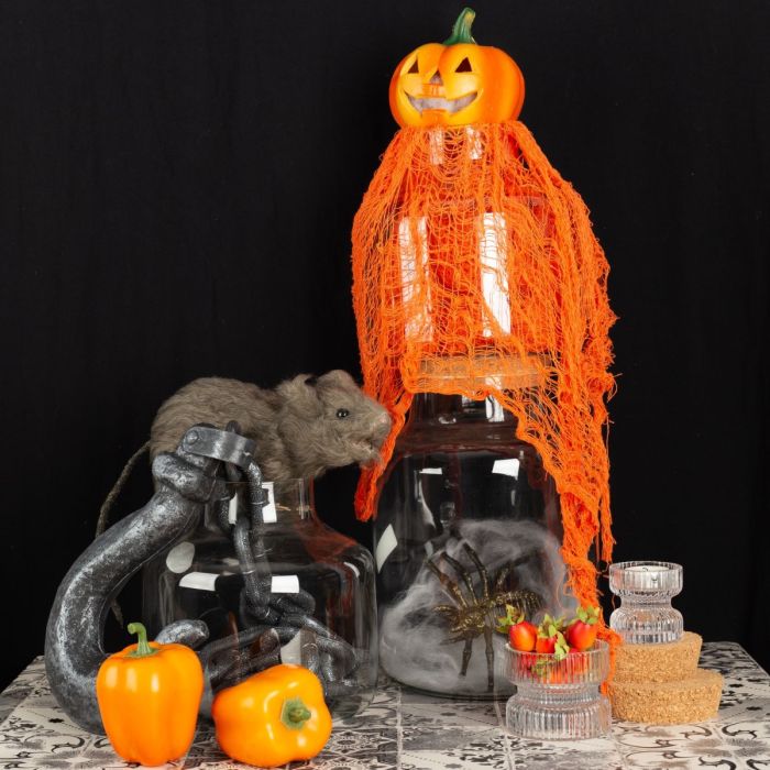 Creepy laboratory! Unsere Vorratsgläser lassen sich für Halloween leicht zu einem Grusellabor umwandeln. Als hätte ein verrückter Professor eine Riesenspinne gefangen und für seine Forschungen konserviert. Die Ratte konnte sich gerade noch retten. Zum Glück liegt auch gleich passendes Futter für „Stoffel“, die Ratte bereit. Dann mal schnell weg, bevor der verrückte Professor zurückkommt! Shop the Look!