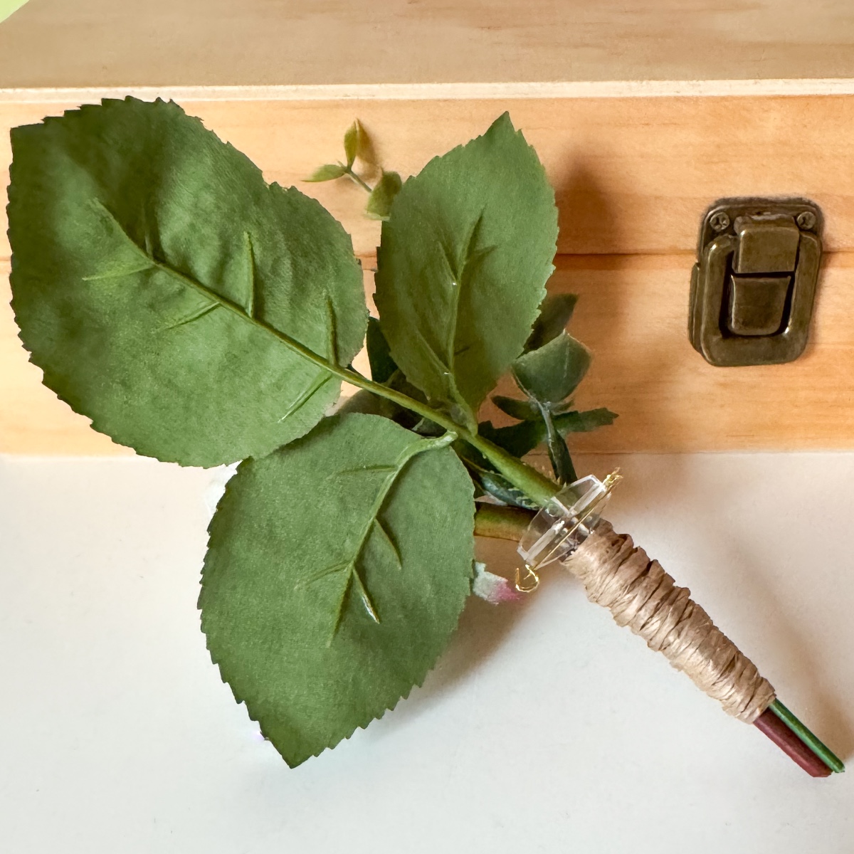 Blüten, die Liebe für immer festhalten! Für Andy und Janine haben wir einen Strauß für ihren großen Tag kreiert. Die cremefarbenen Rosen strahlen klassische Schönheit aus, sind besonders realistisch und fühlen sich fast wie echte Blumen an. Das Schleierkraut setzt sanfte hellbläuliche Farbtupfer, während der Eukalyptus die natürliche Frische unterstreicht. Passend dazu haben wir einen stilvollen Anstecker für den Bräutigam gefertigt, der den Look harmonisch abrundet. Ob für Fotos, den Gang zum Traualtar oder als Erinnerungsstück für die Ewigkeit – dieser Hochzeitsstrauß hält die schönsten Momente liebevoll fest. Shop the Look!