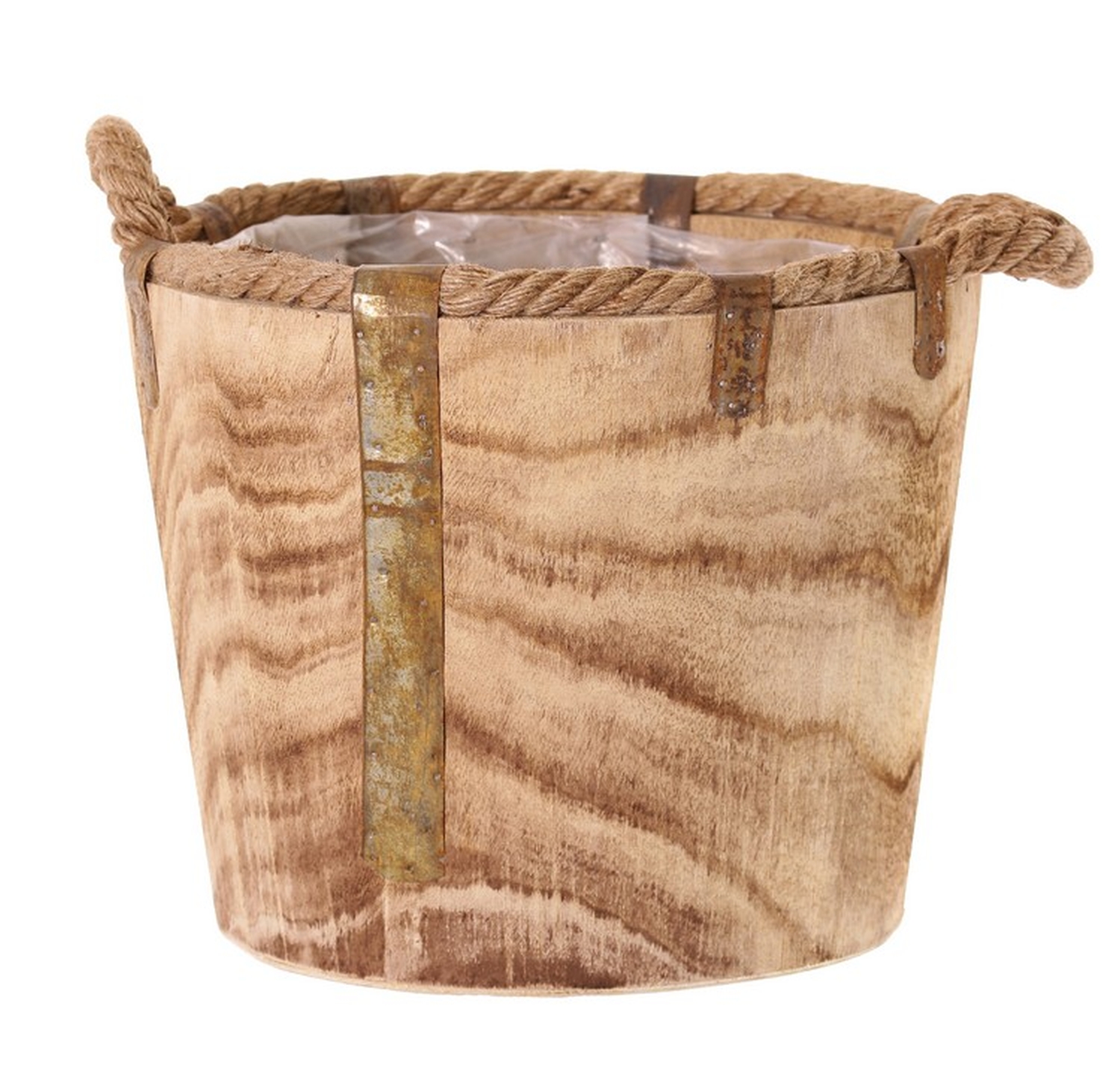 Holz Übertopf DABIH mit Griffen aus Seil, braun, 24cm, Ø29cm