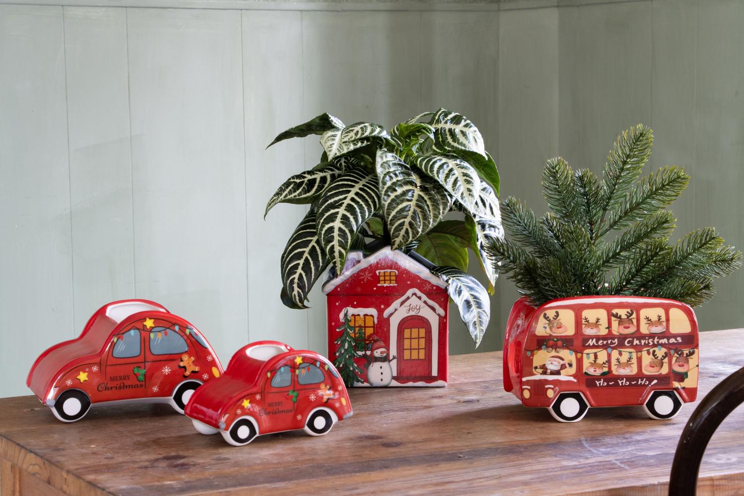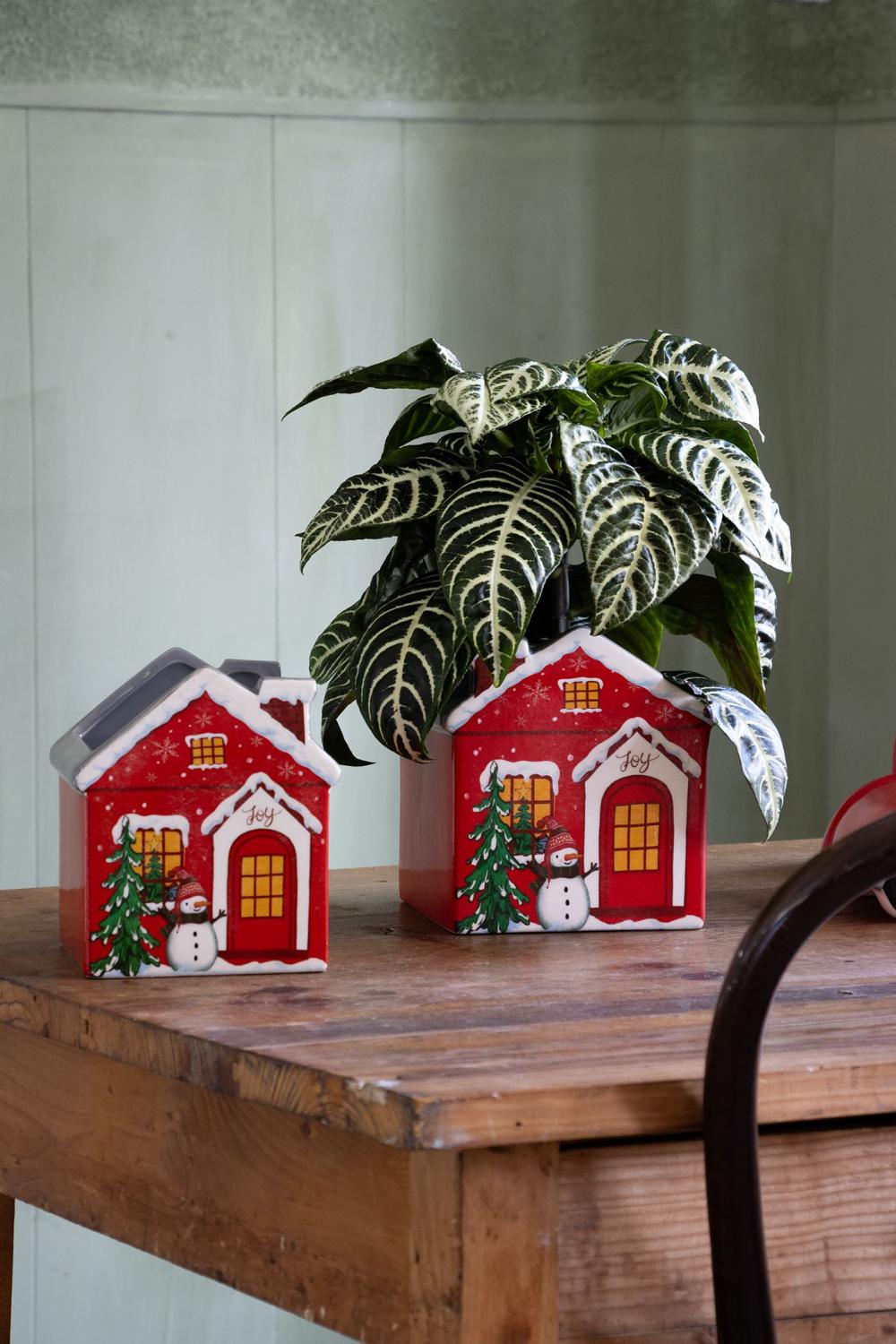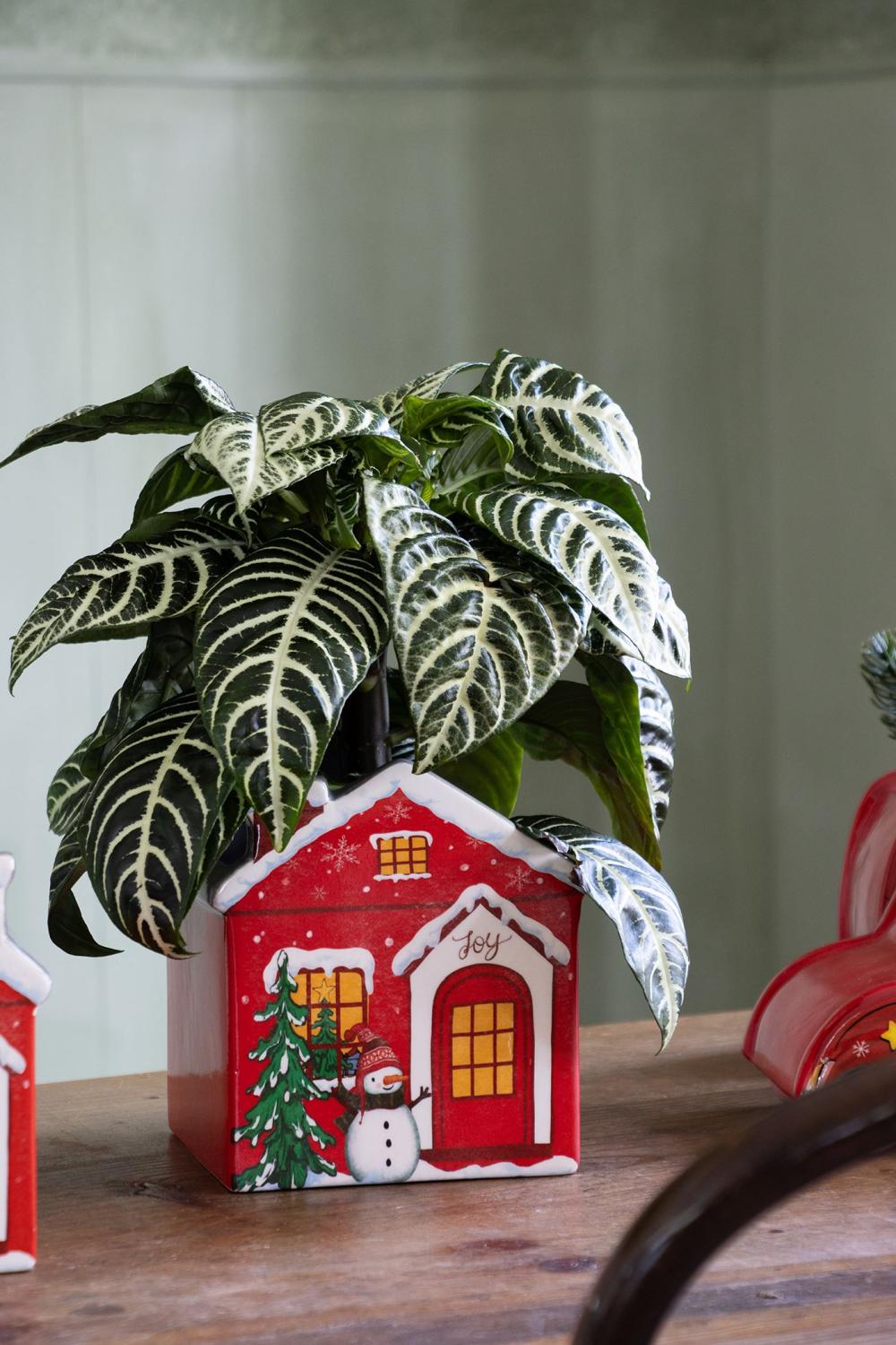 Keramik Haus Pflanztopf ARMAS, weihnachtlich, rot-weiß, 13x13x15cm