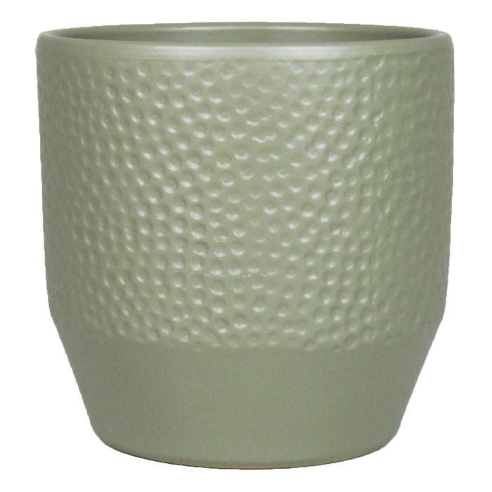 Keramik Übertopf BIHAM, Hammerschlag Muster, olivgrün-matt, 13,2cm, Ø13,5cm