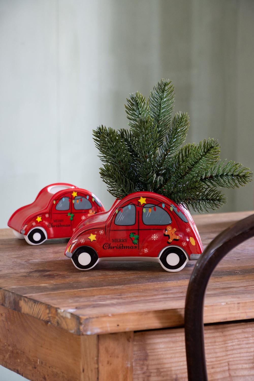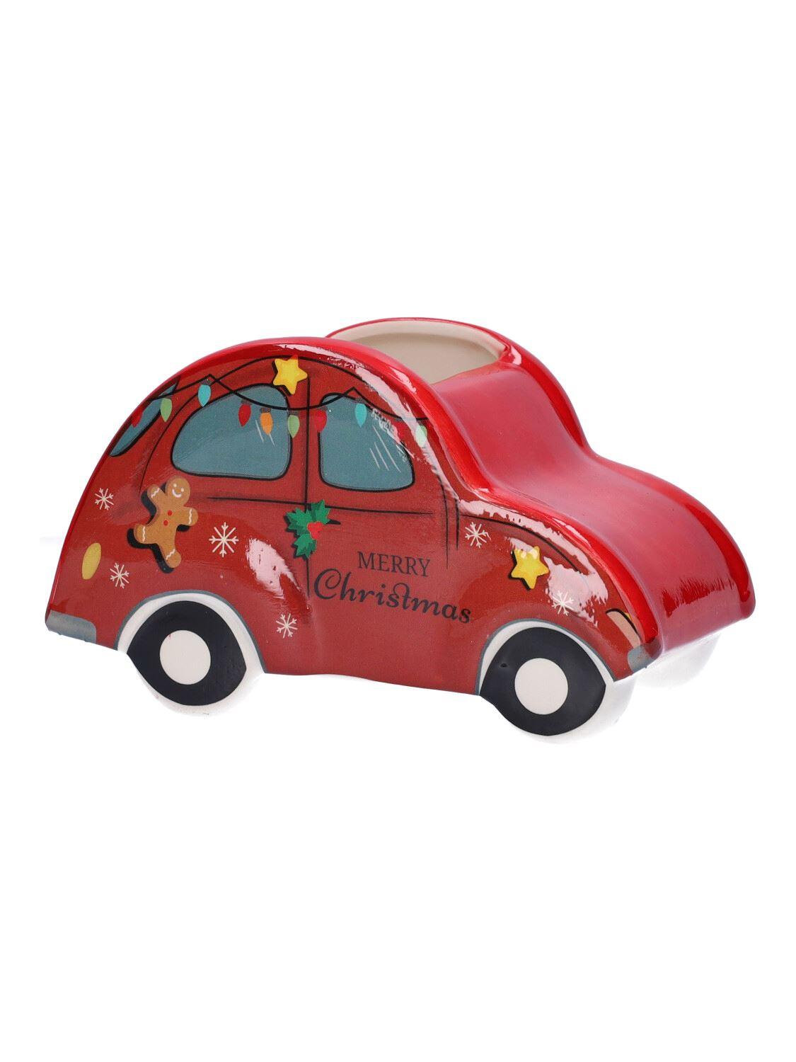 Keramik weihnachtliches Auto Pflanztopf ARMAS, rot, 19x12x11cm