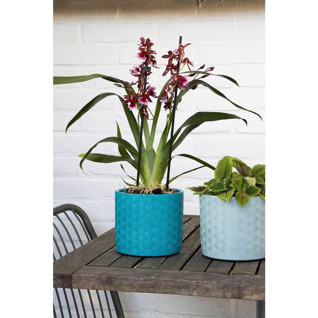 Keramiktopf FERDINANTA mit Muster, türkis-matt, 12,3cm, Ø13,5cm