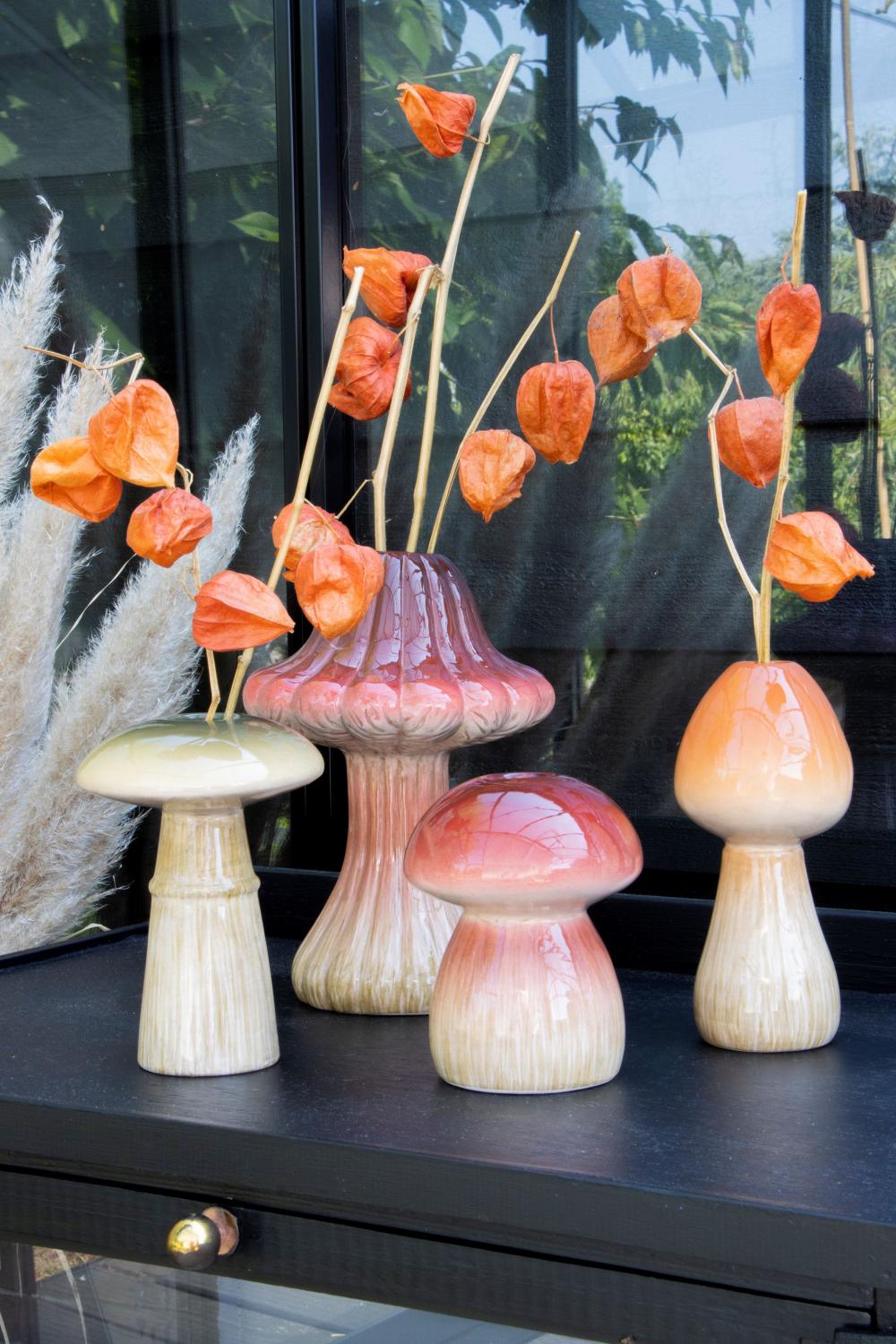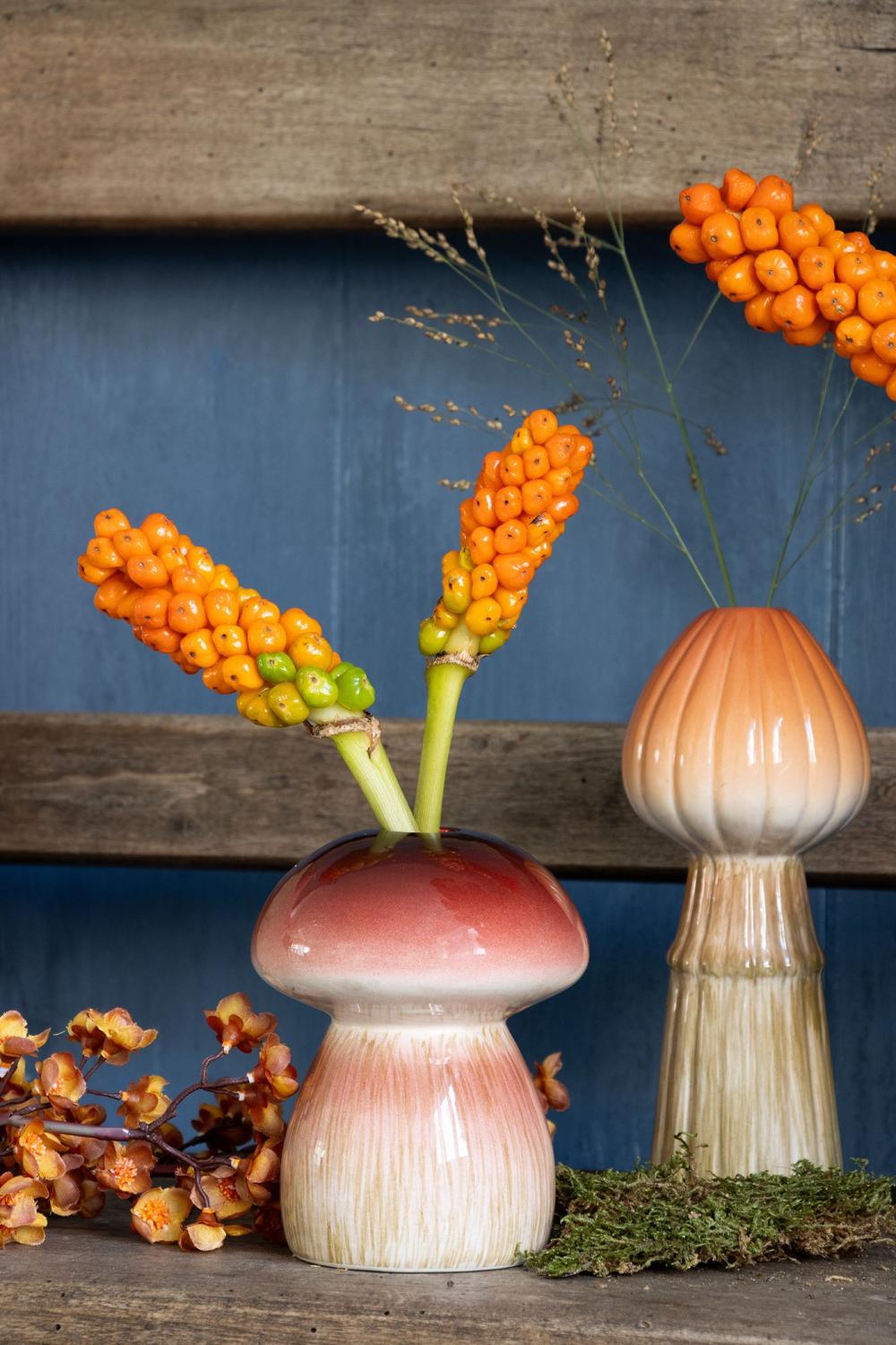 - Die Vase eignet sich perfekt für die Dekoration im Herbst. Stellen Sie den Pilz z.B. in der Mitte von einem geschmückten Kranz, mit bunten Blättern, Zweigen oder Blumen gefüllt wird Ihr Ensemble zu einem prachtvollen Anblick auf Ihrem Wohnzimmertisch, auf dem Empfangstresen im Hotel oder im Restaurant