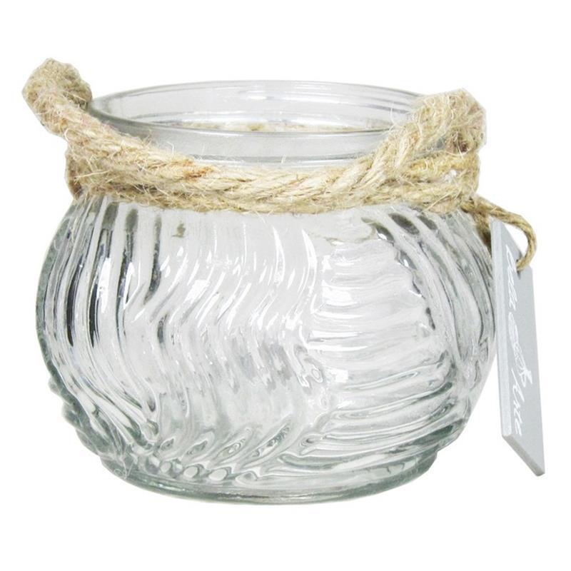 Kerzenhalter FIDELMA aus Glas, gewellte Rillen, klar, 9cm, Ø11,5cm