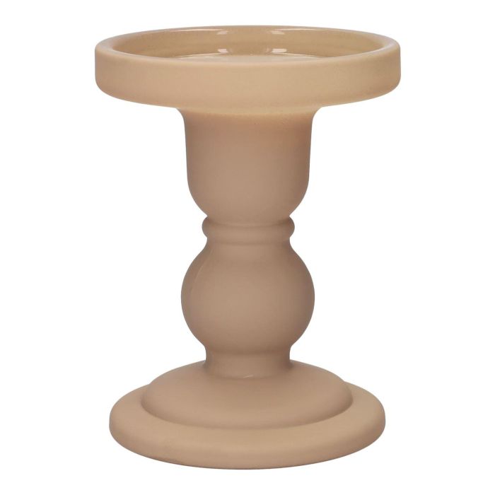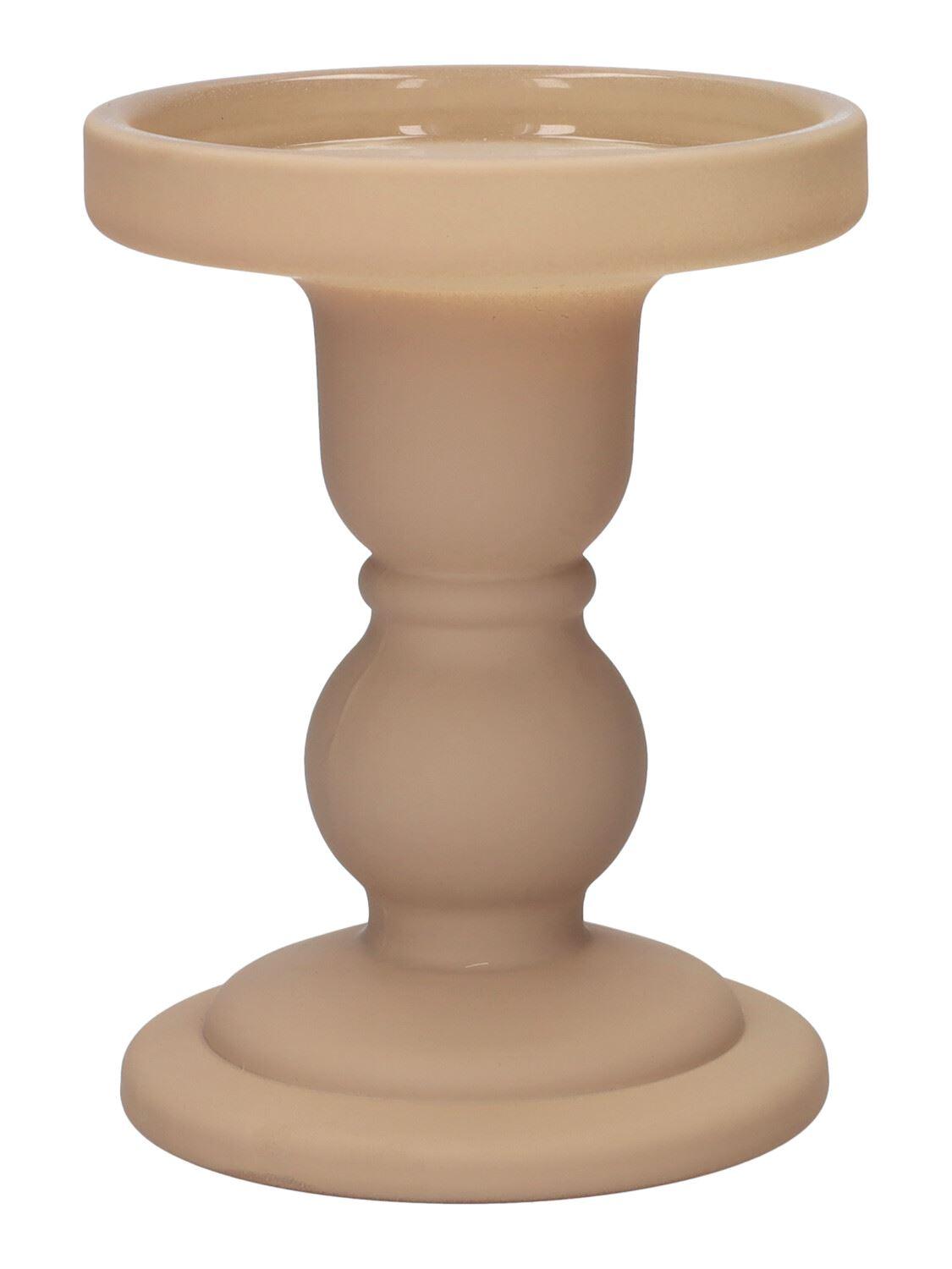 Kerzenhalter Stumpenkerze KLEOFINA aus Glas, mit Fuß, beige-matt, 11cm, Ø8,5cm