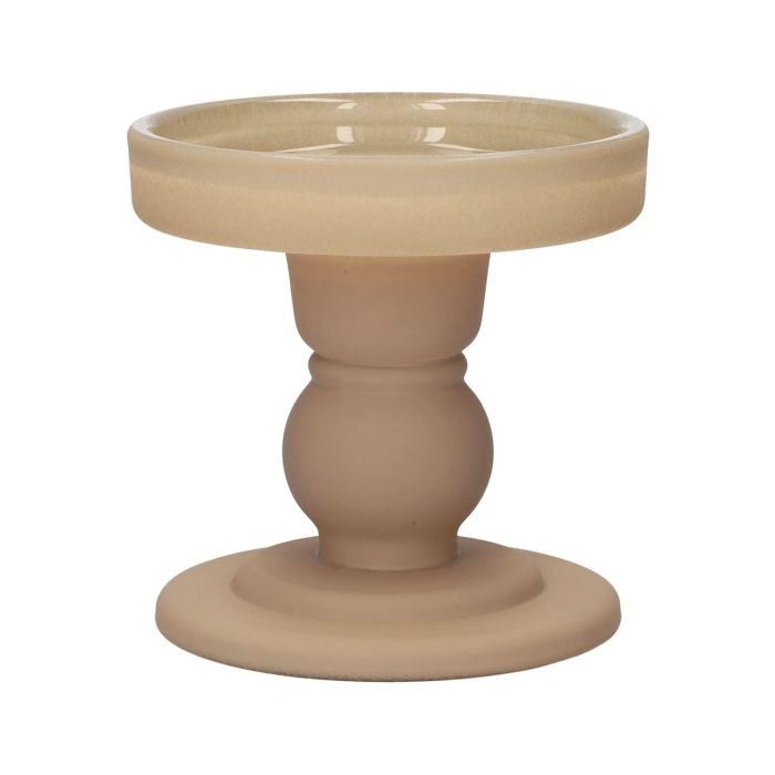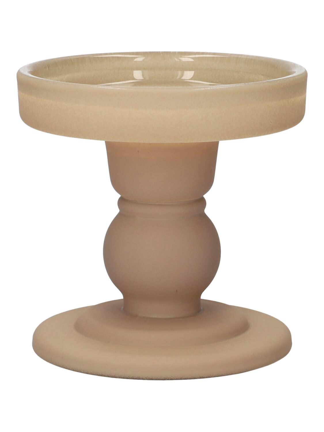 Kerzenhalter Stumpenkerze KLEOFINA aus Glas, mit Fuß, beige-matt, 8,5cm, Ø8,5cm