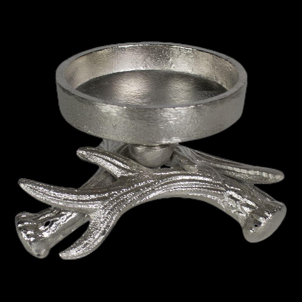 Kerzenleuchter Geweih LIBUSCHA aus Aluminium, silber, 8cm, Ø14cm