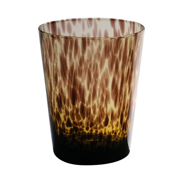 Konisches Glas Teelichthalter RUSSELL, Leopardenmuster, braun-klar, 13cm, Ø9cm