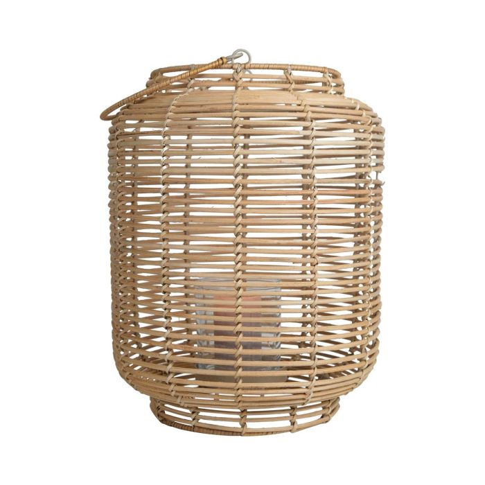 Korb Laterne AMBROSIA aus Rattan, Henkel, Glaseinsatz, beige, 52cm, Ø28cm