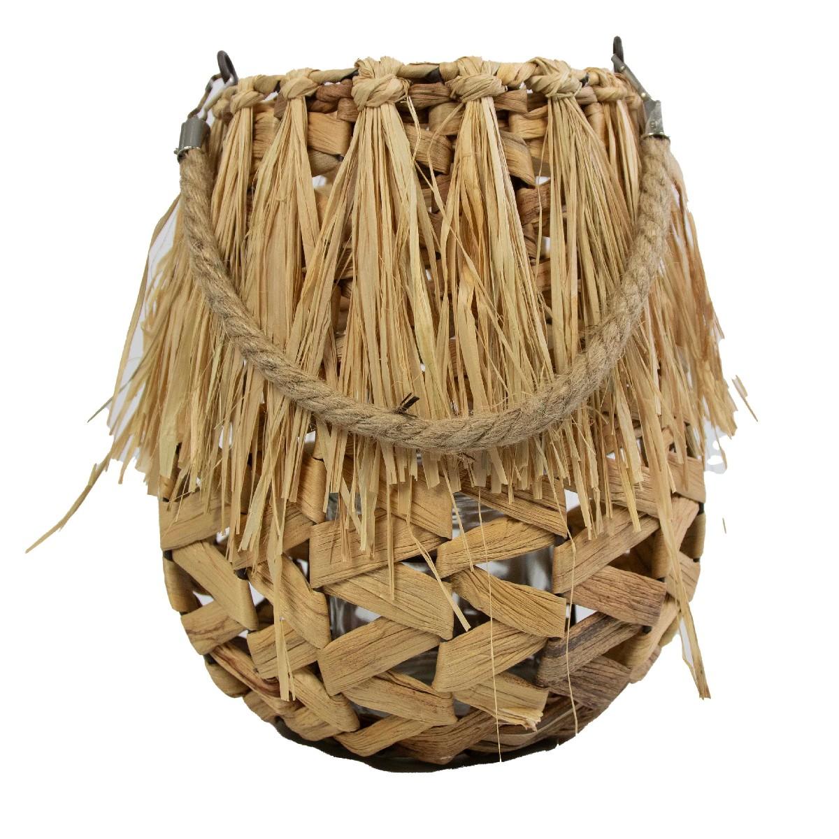 Korb Laterne NATASCIA, Wasserhyazinthe, Henkel, Glaseinsatz, braun, 27cm, Ø17cm