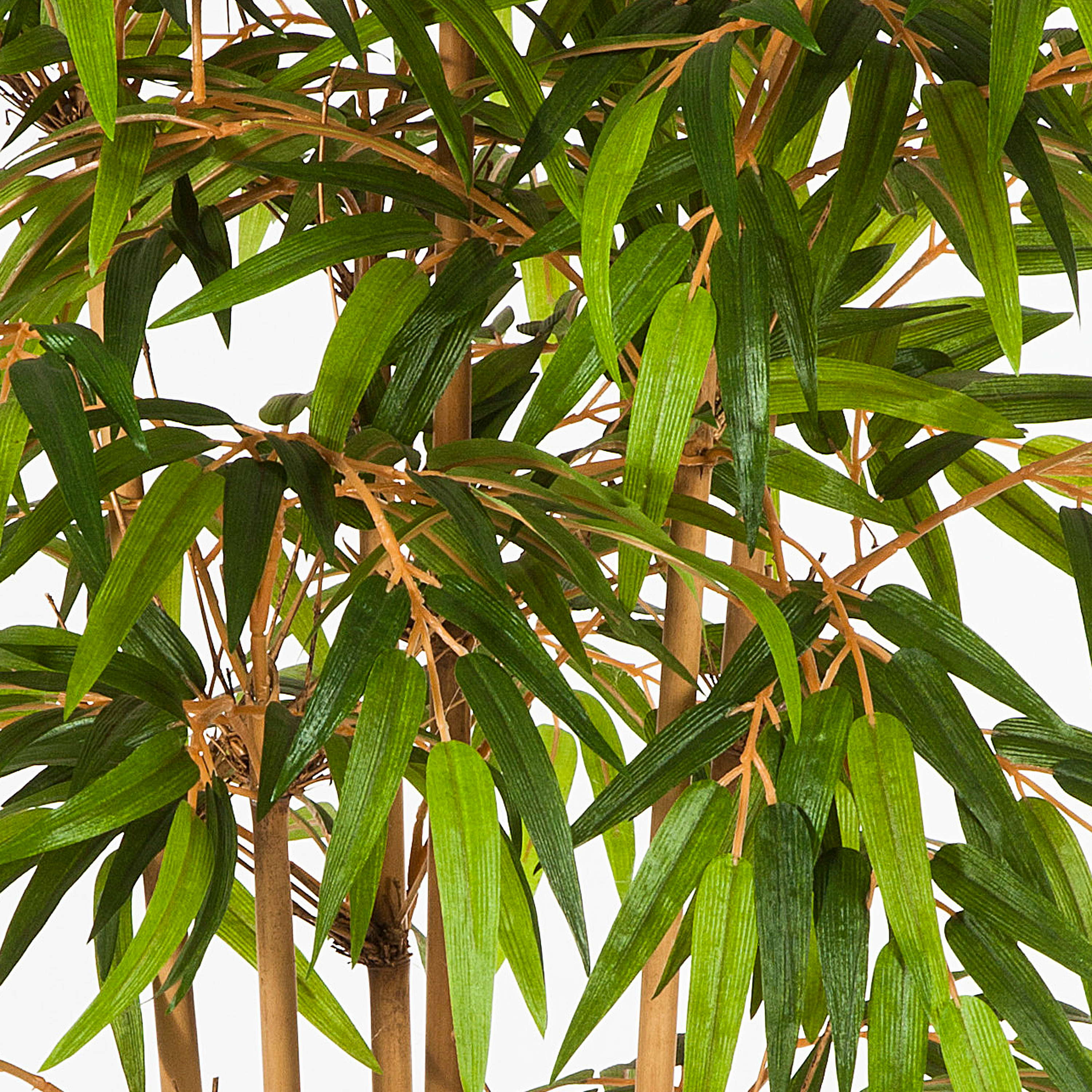 - Ca. 800 hell- und dunkelgrüne Textilblätter in filigraner, langer Bambus-Blatt-Form mit detaillierten Verzweigungen und Stämmen aus echten Bambus Rohren