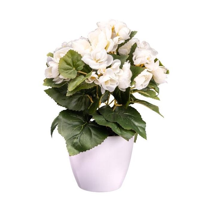 Künstliche Blume Begonie SYLINA, weißer Dekotopf, creme, 30cm